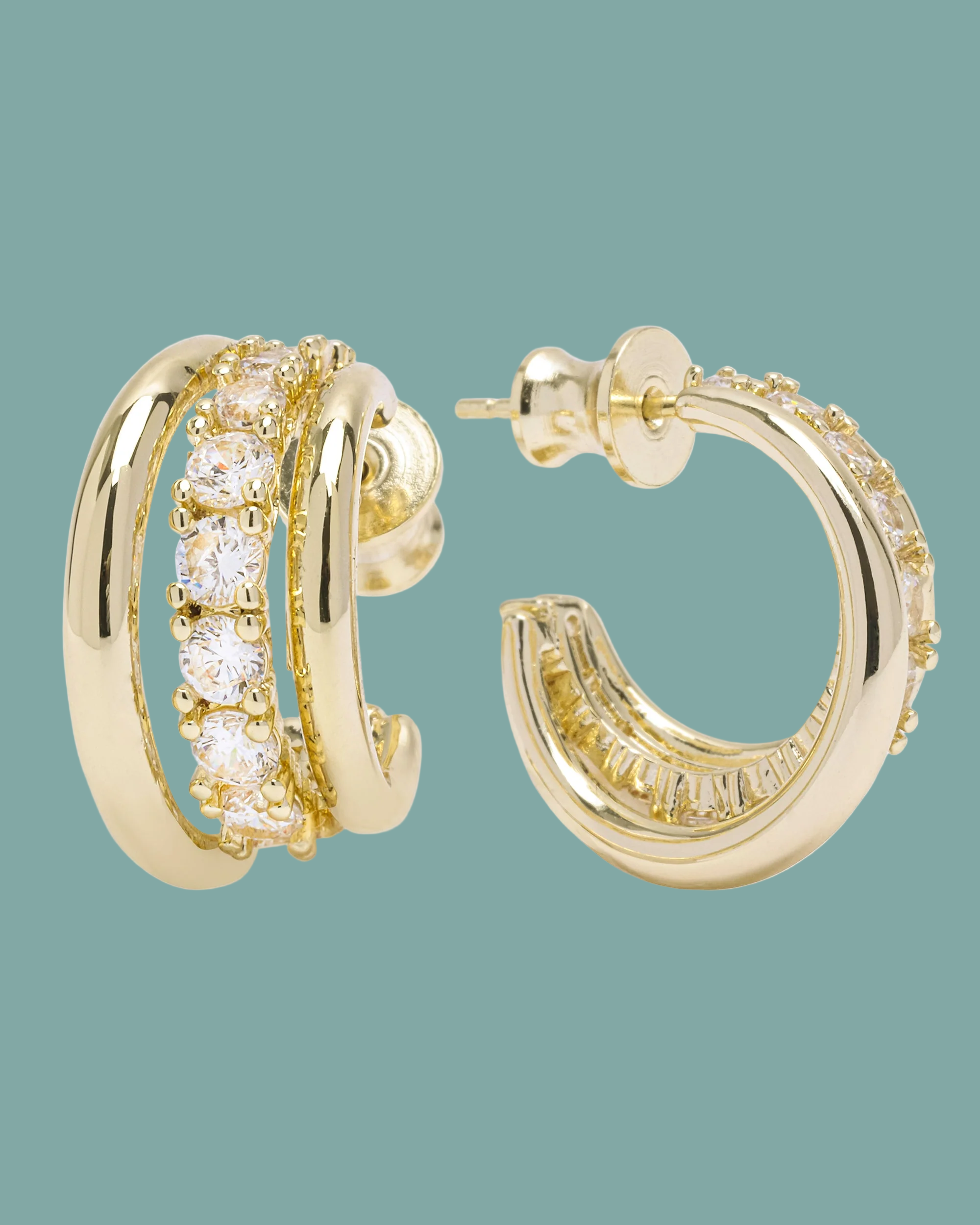 Achieve that coveted stacked earring aesthetic without the complexity. Our "Oh She Fancy" Smooth & Diamond Hoops deliver maximum impact with minimal effort—gleaming gold paired with a sparkling line of simulated diamonds creates serious statement-making style. At 0.7" diameter, these hoops offer a bold presence that's surprisingly wearable for everyday glamour.