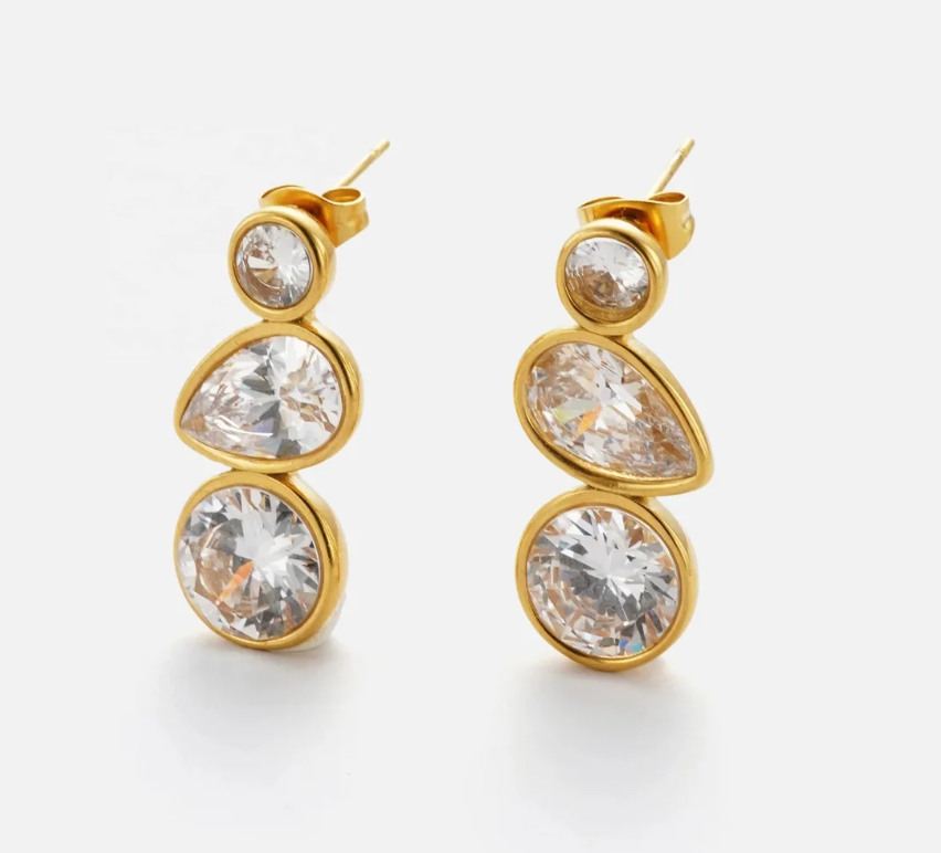Sparkle with style in our Organic Diamond Drop Earrings. Channel set CZ stones & 18K gold drops spread light, while the concave fit & hypoallergenic steel keep you comfy. Classic butterfly closure makes them easy to wear for a lifetime of everyday & all-night glamour.