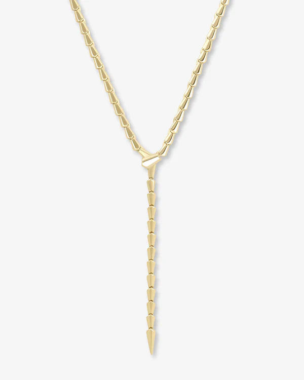 Embrace your inner rebel with the Serpent Lariat Necklace, a striking Y-shaped piece that channels bold, edgy energy. Featuring distinctive snake-like links, this versatile necklace works beautifully draped over a low-cut top for maximum impact or layered casually over your favorite tee. Whether you're channeling your most confident self or adding an unexpected twist to everyday wear, this statement piece delivers attitude and style in one sleek design.