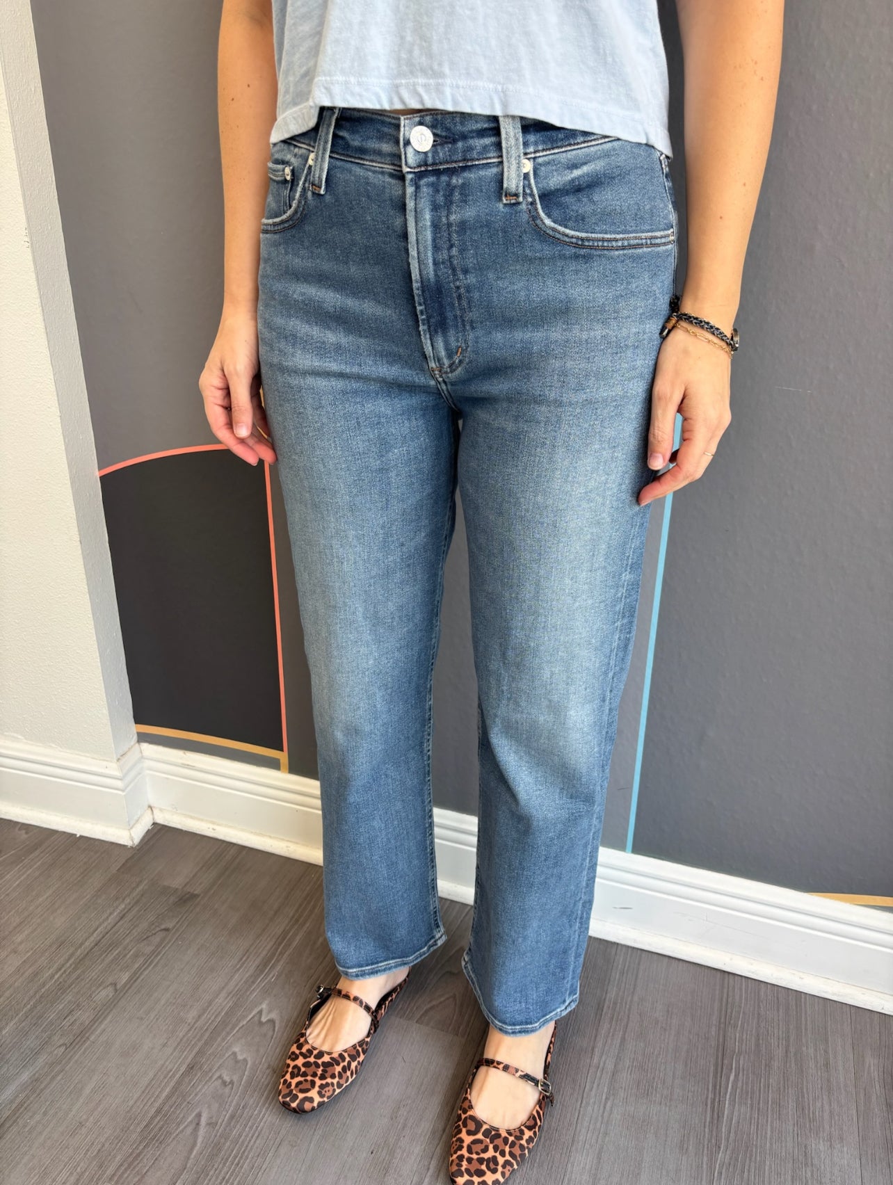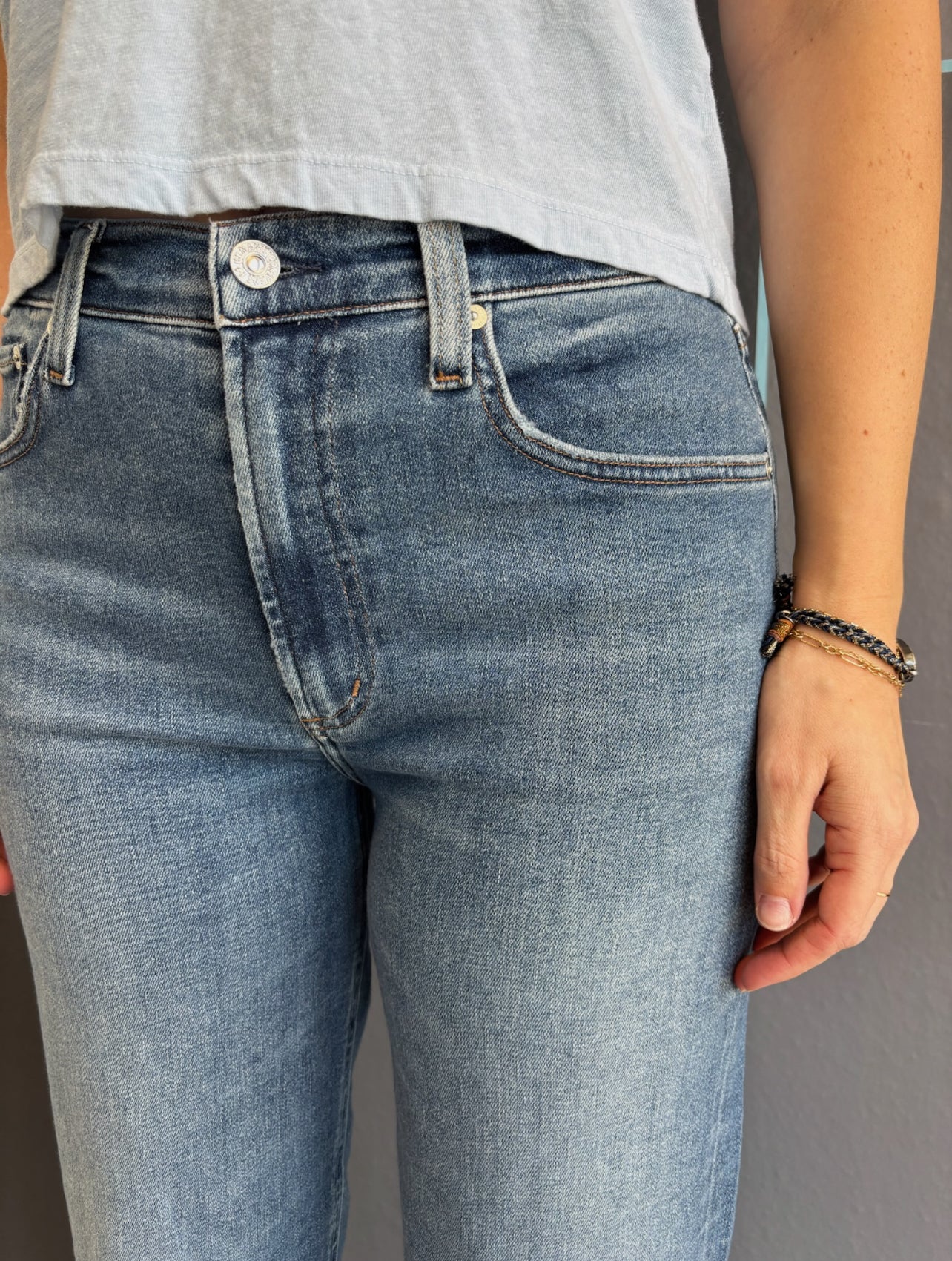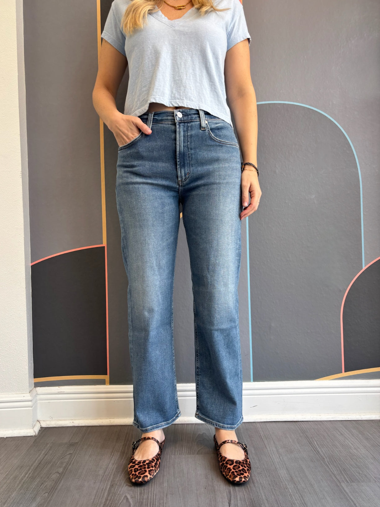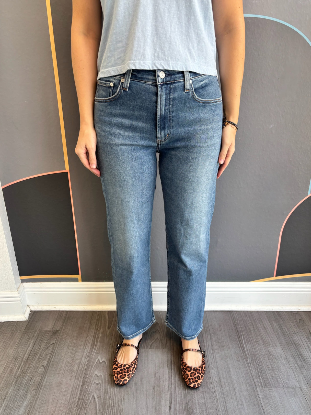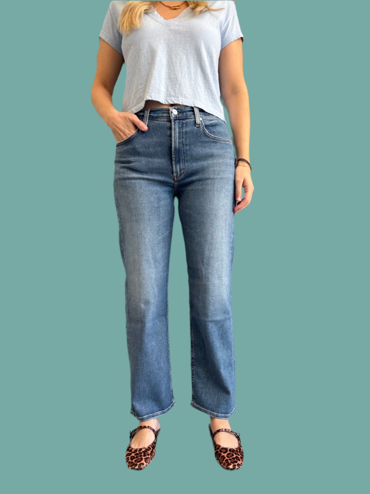The ‘Palma’ is a modern straight leg with a streamlined, ankle-skimming cut. Crafted from soft stretch denim with a lightweight feel, it’s designed for everyday comfort and ease. Cooper is a classic indigo wash with soft whiskering—style it with anything from a tucked knit to a relaxed blazer.