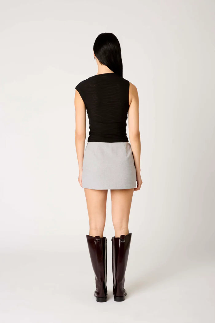 A year-round shape with a fabric that leans into fall. The Zella Skort sits mid-rise with a side closure and sharp front slit to break up the silhouette. Fully lined for structure and comfort, it’s a simple cut that holds its own—easy to pair, easy to style.