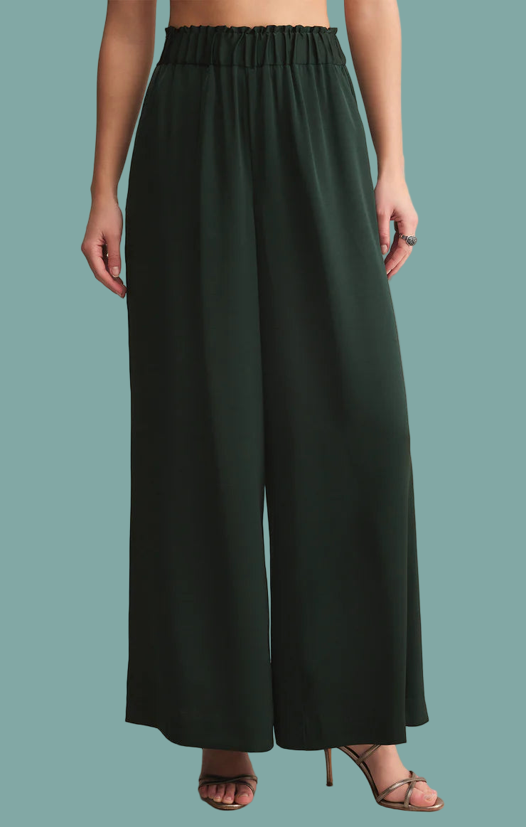 Made from a silky satin fabric with a high rise and wide leg, this pant delivers easy sophistication in a fluid, relaxed design. An elastic waist and subtle sheen make it an instant favorite for dressed-up days or cozy nights in.