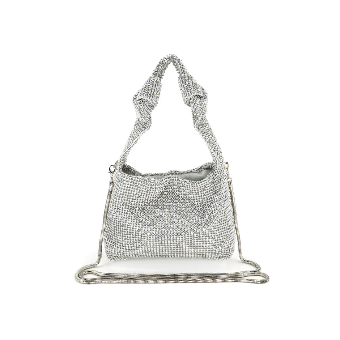 Get knotty with the Knot Evening Bag! This sparkly handbag not only adds a touch of glamour to your evening look, but its knotted detailing is sure to catch some attention. With a shoulder strap and removable crossbody strap, this bag offers versatility and convenience.