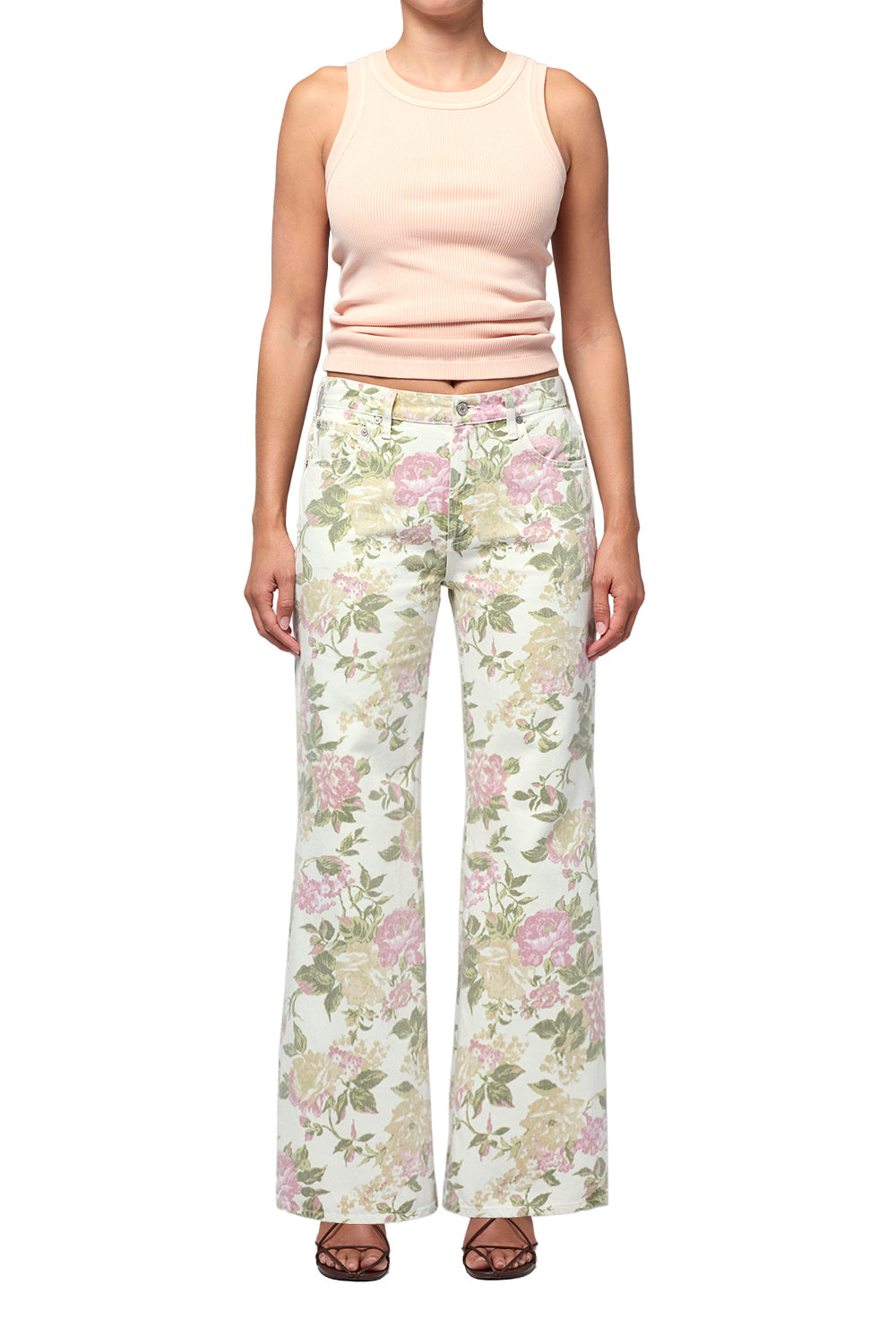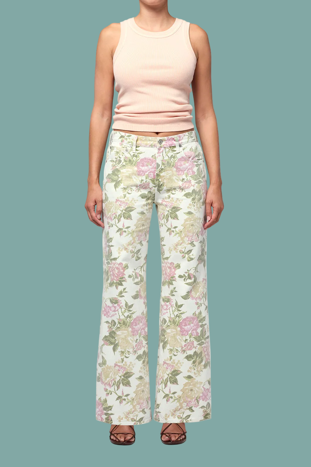 Looks Like: White and Floral denim pant