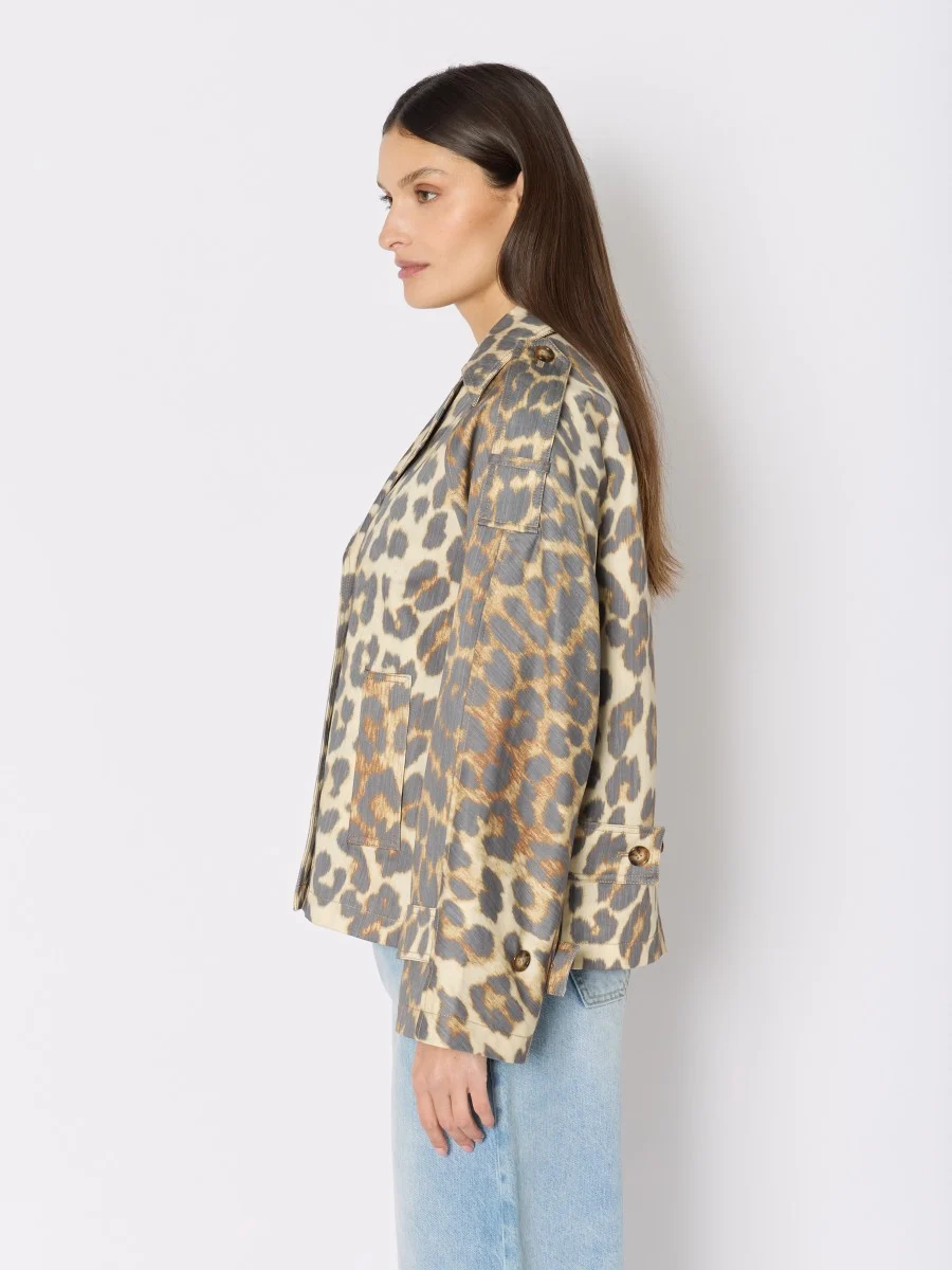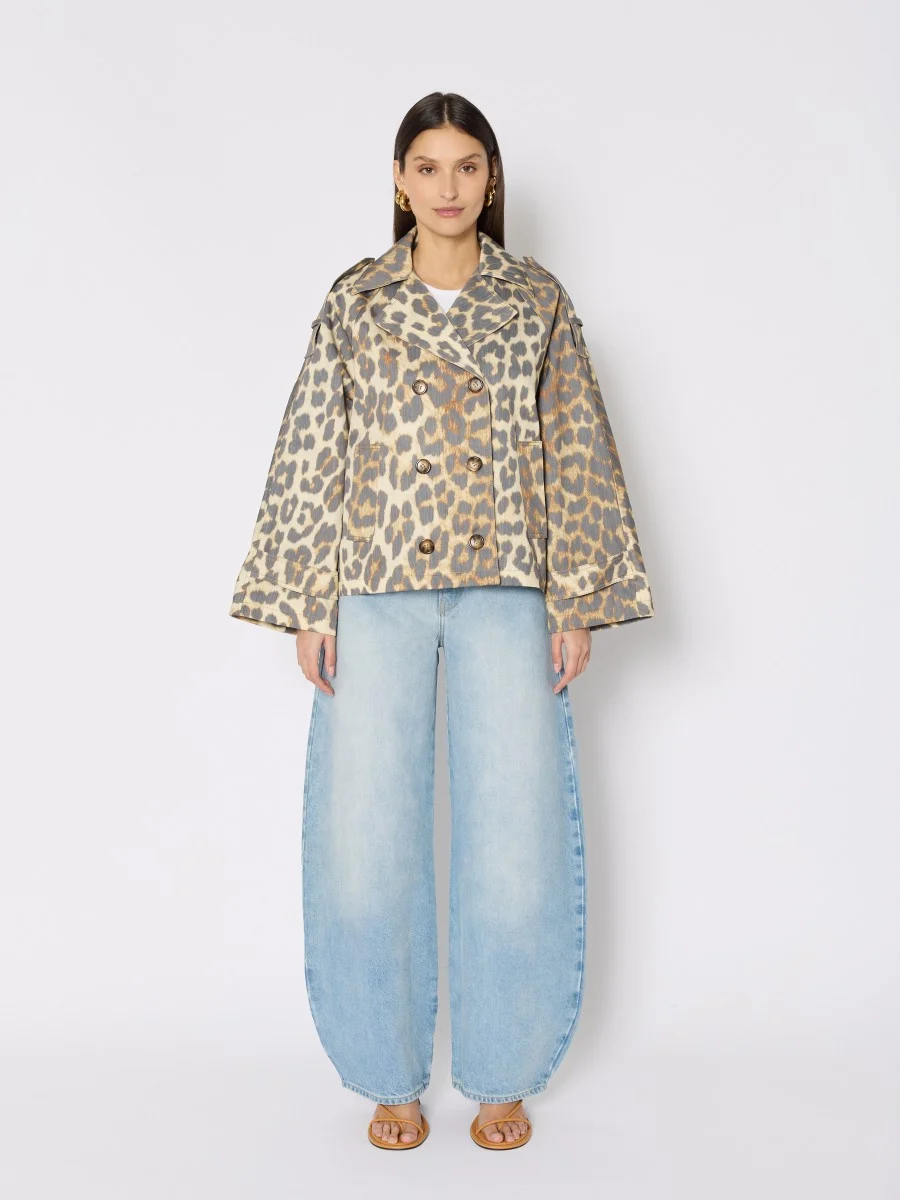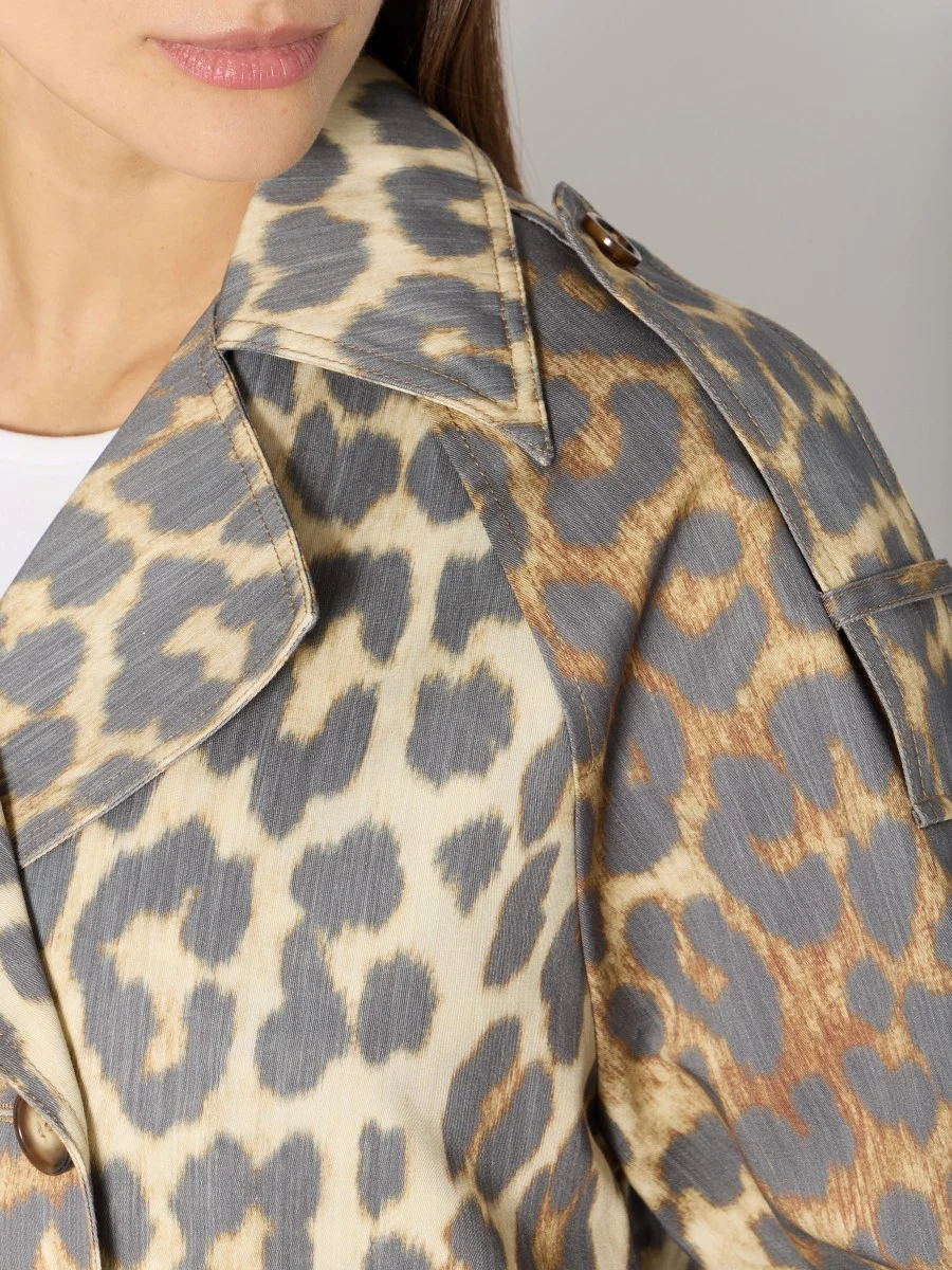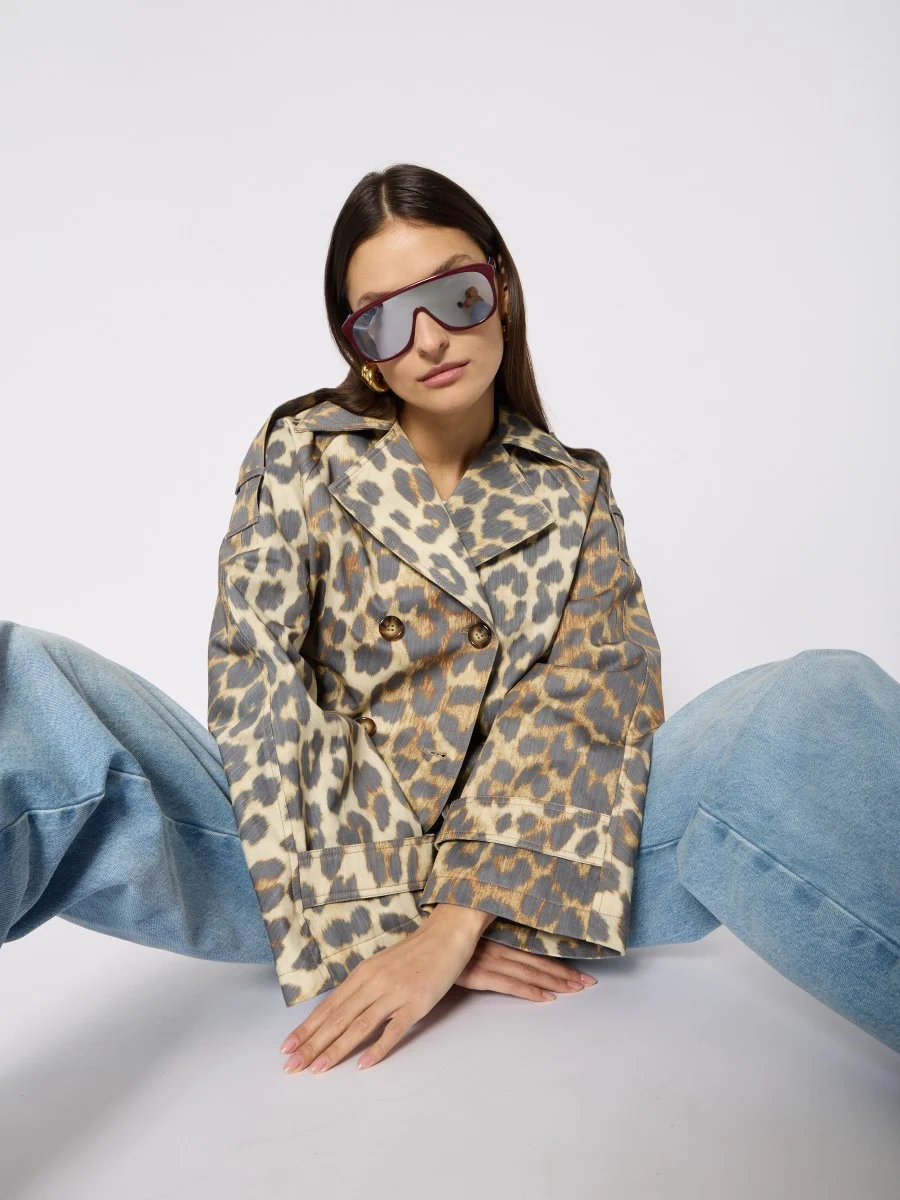 The trench MURIEL is a piece that embodies the timeless elegance of French fashion, while adding a bold touch thanks to its print leopard. This trench revisits a classic with a modern and oversized cut. Made from cotton, it is both light and durable, ideal for mid-season days. Its double breasted and cuff straps add details that enhance the style and ensure an unforgettable look.