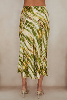 Slip into effortless style with this silky tie dye midi skirt, featuring a dreamy blend of green, yellow, and soft brown tones. The smooth, luxurious fabric drapes beautifully against your skin, while the midi length offers versatile wear for any occasion. Perfect for layering over basics or pairing with your favorite crop top, this unique tie dye pattern adds a laid-back vibe to your wardrobe. Comfortable, chic, and endlessly wearable.