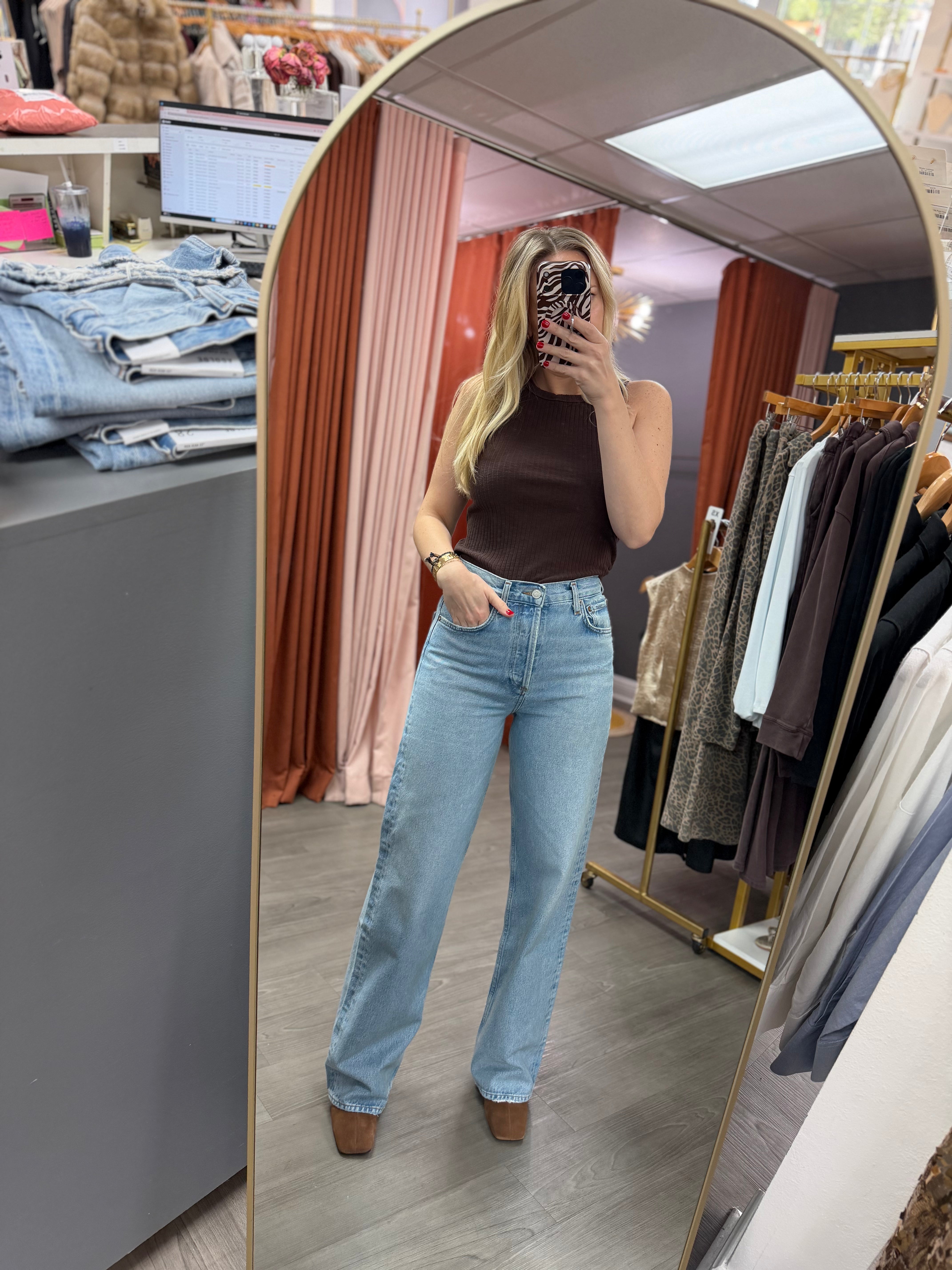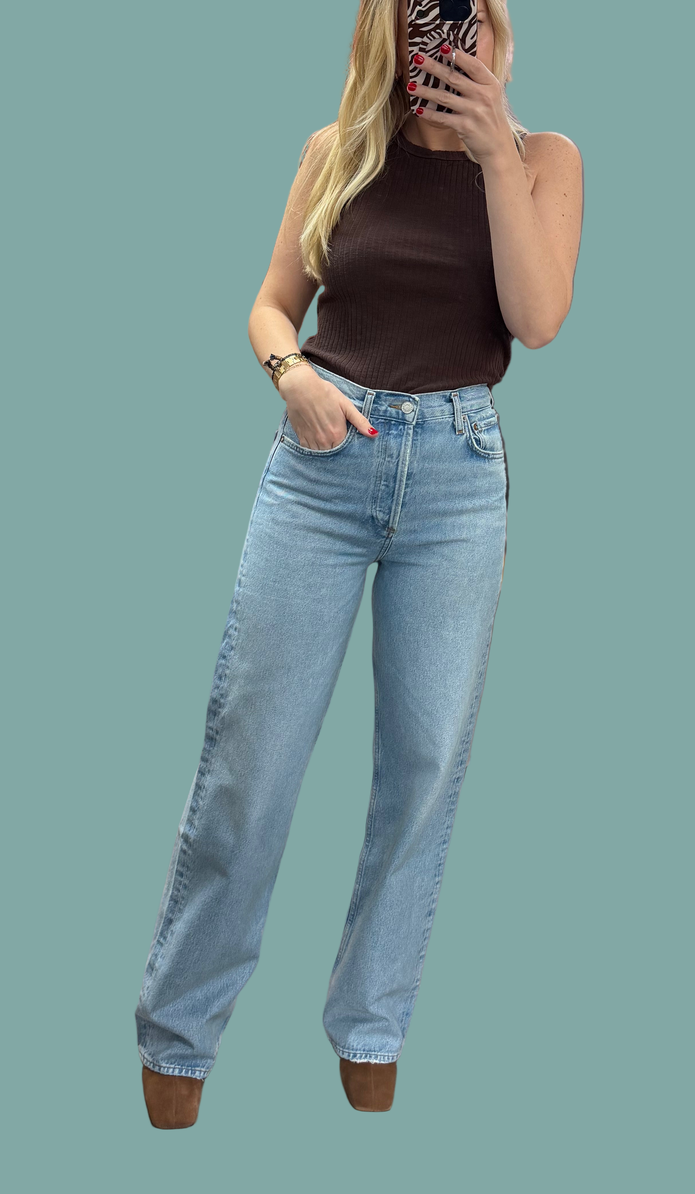 The Ren 32 Jean combines effortless style with thoughtful construction. Its high-rise, wide-leg silhouette flatters with a defined waist and relaxed hip fit, while the elongated leg creates a streamlined look. Made from rigid regenerative cotton denim with a soft hand feel, this pair offers structure and comfort for all-day wear. The worn-in medium indigo wash brings vintage character to a versatile everyday essential that works with everything in your closet.
