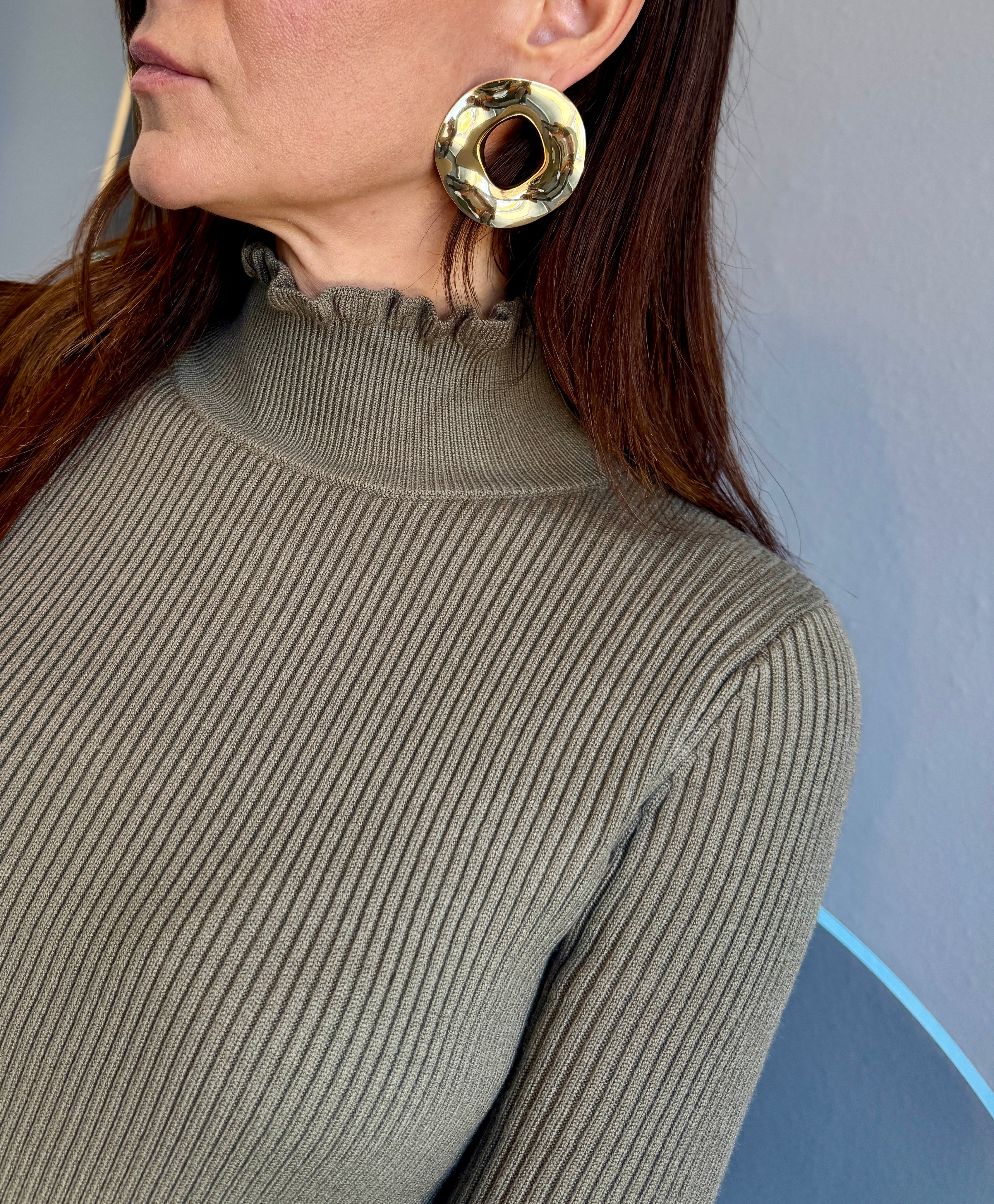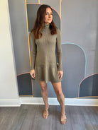 The Nikita Dress features a ruffled neck and flouncy ruffle hem for a playful touch. Made from ribbed material with long sleeves, it keeps you comfortable and stylish. Available in crème and olive green, this versatile dress pairs perfectly with sneakers for a laid-back vibe, boots or heels to elevate your look, or ballet flats for an adorable finish.