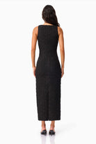 This sleeveless fitted Paloma Gown features a striking split black and white design on the front, complemented by a solid black back for a sleek look. The hidden back zipper ensures a smooth silhouette and easy wear. Perfect for casual occasions, this dress combines bold style with comfortable fit.