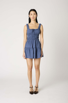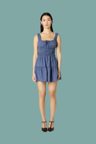 The Salt Dress channels a blend of nostalgic charm and playful ease. This warm-weather muse features a ruched bodice with a flattering scoop neckline and front-tie detail. The skirt flows into a flouncy, tiered silhouette that moves with ease.
