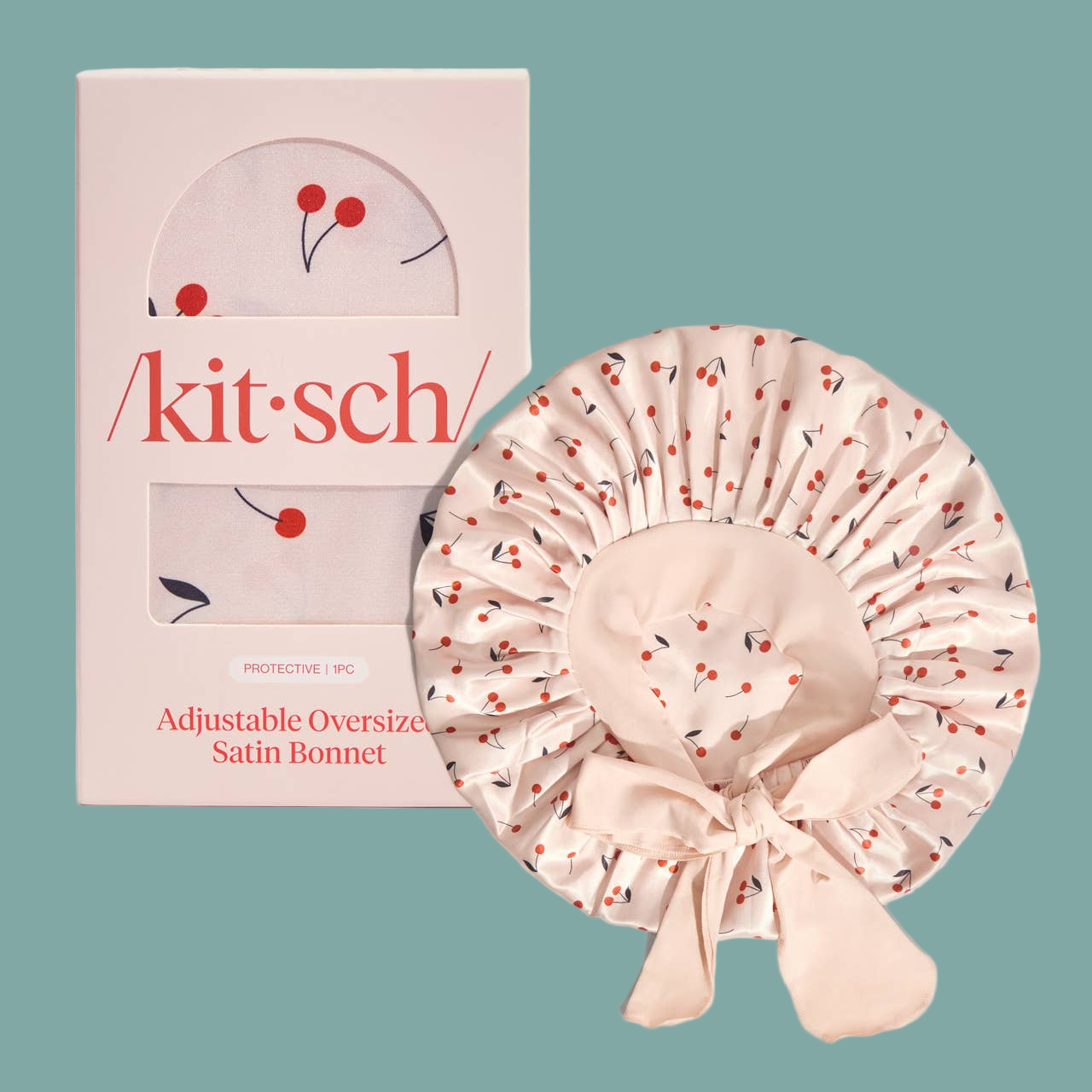 Adjustable Oversized Satin Bonnet - Cherry Print