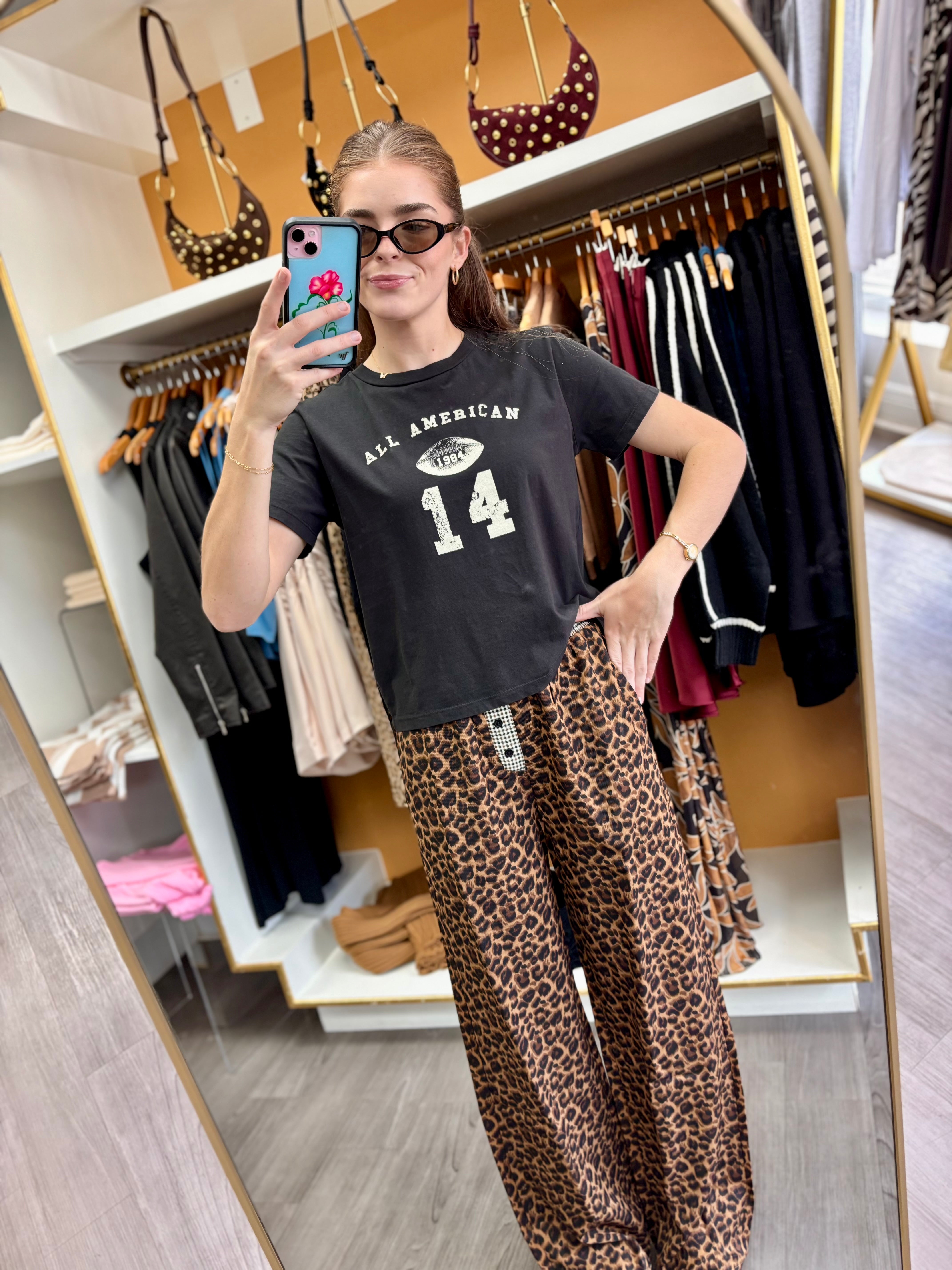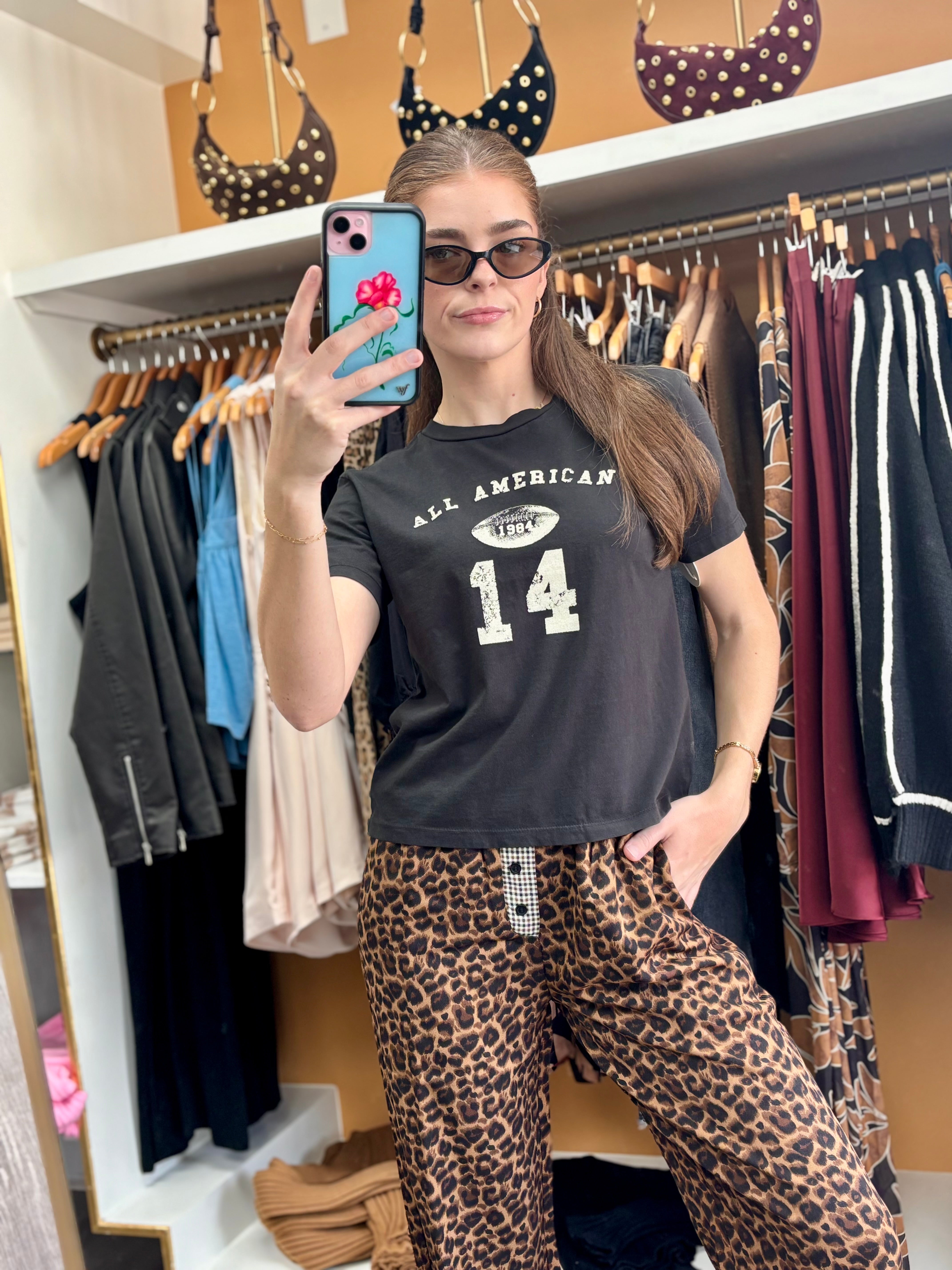 Your new favorite tee for tailgates, summer nights, or just showing a little team spirit. The All American tee is a nod to vintage football, featuring a faded ‘84 football graphic and varsity-style “14”. With a just-right fit and soft feel, this one scores every time.