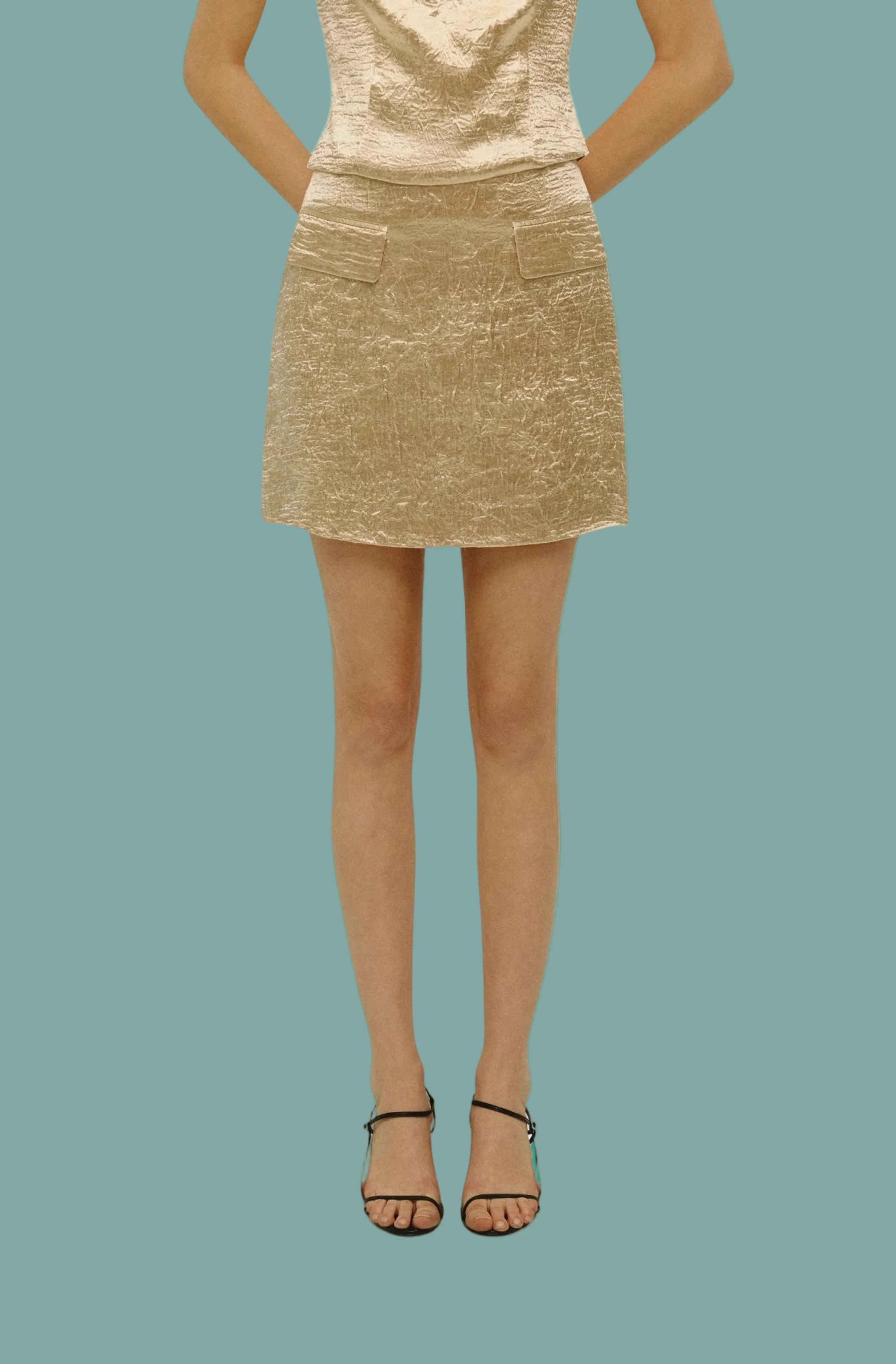 The Devon Mini Skirt offers a sleek, metallic shimmer that adds a subtle edge to your everyday wardrobe. Designed for comfort and style, its flattering fit works perfectly for both casual days and chic nights.