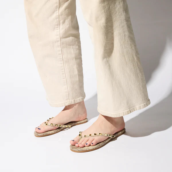 Step up your sandal game with the Rivington Stud Sandal - Snake! Featuring an embossed vegan leather upper and metallic pyramid studs, these flip flops are both feminine and chic. The cushioned footbed provides superior comfort and flexibility, while the durable rubber sole sports a signature snake print design.