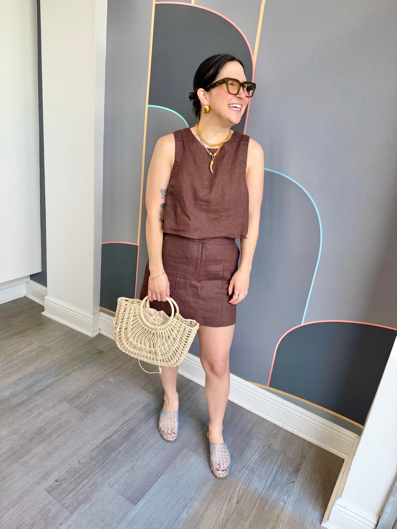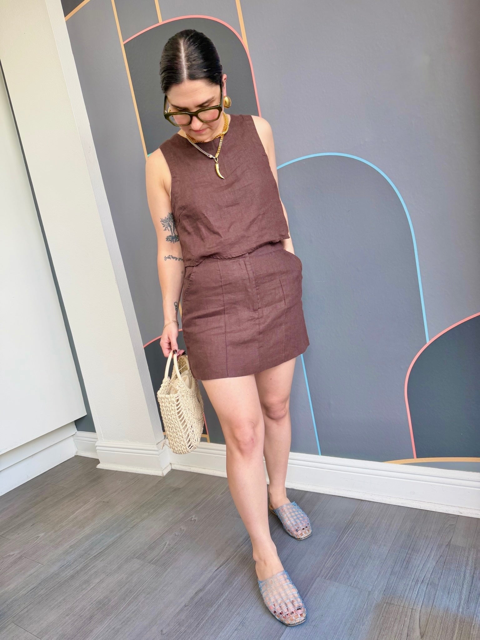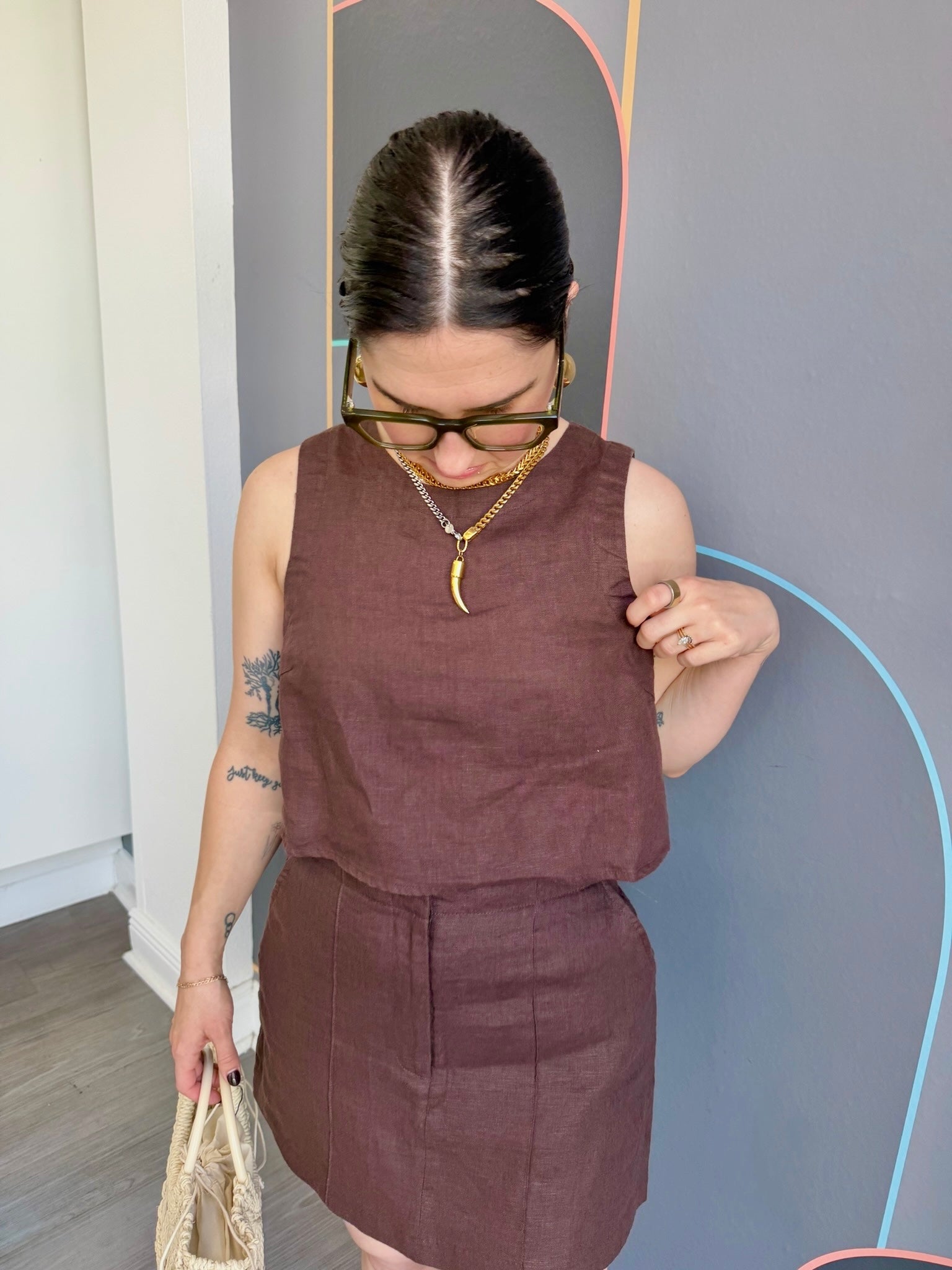 The Sian Linen Top is crafted from a breathable, premium linen fabrication with a soft hand feel. This top is cropped length and features a crew neckline and back button closure.