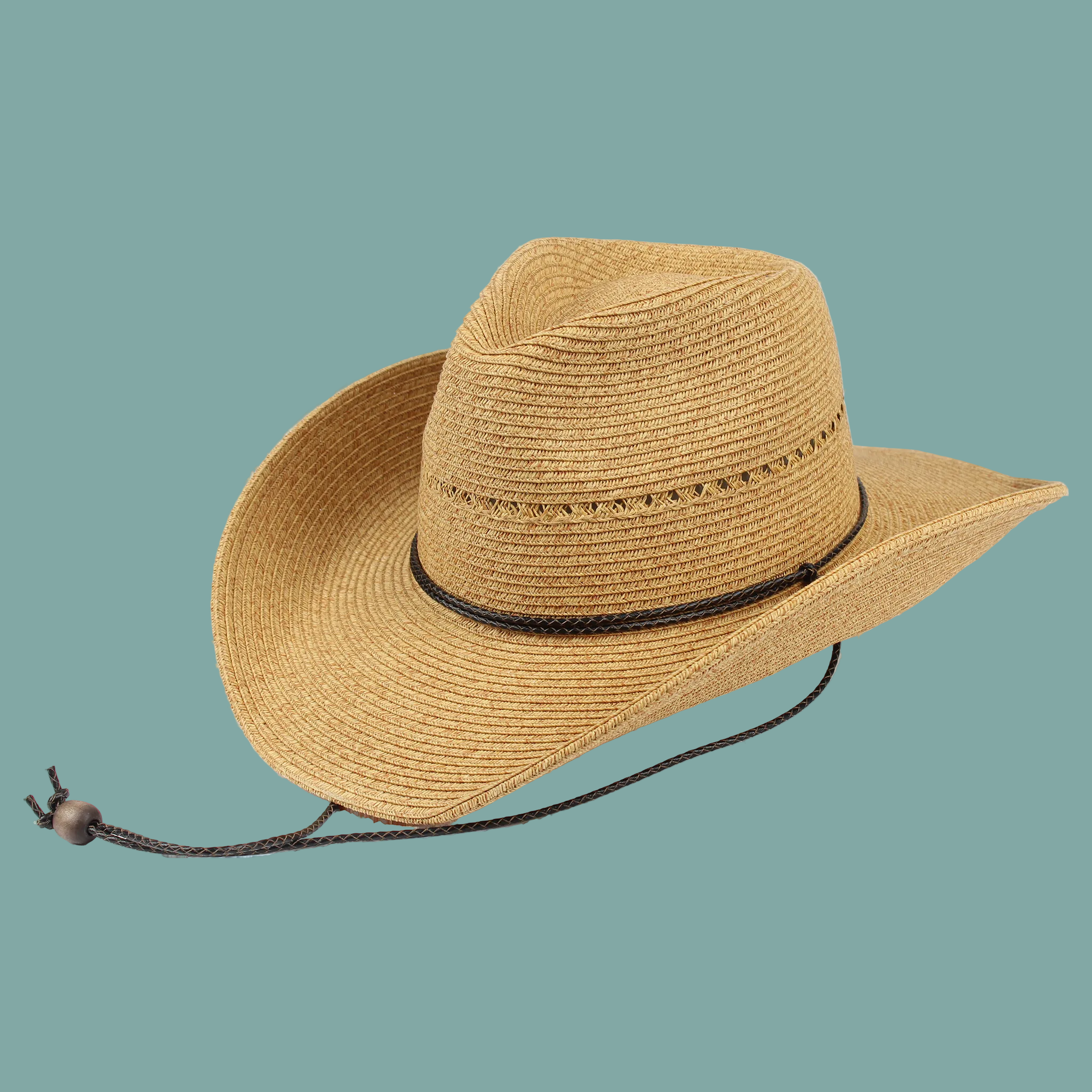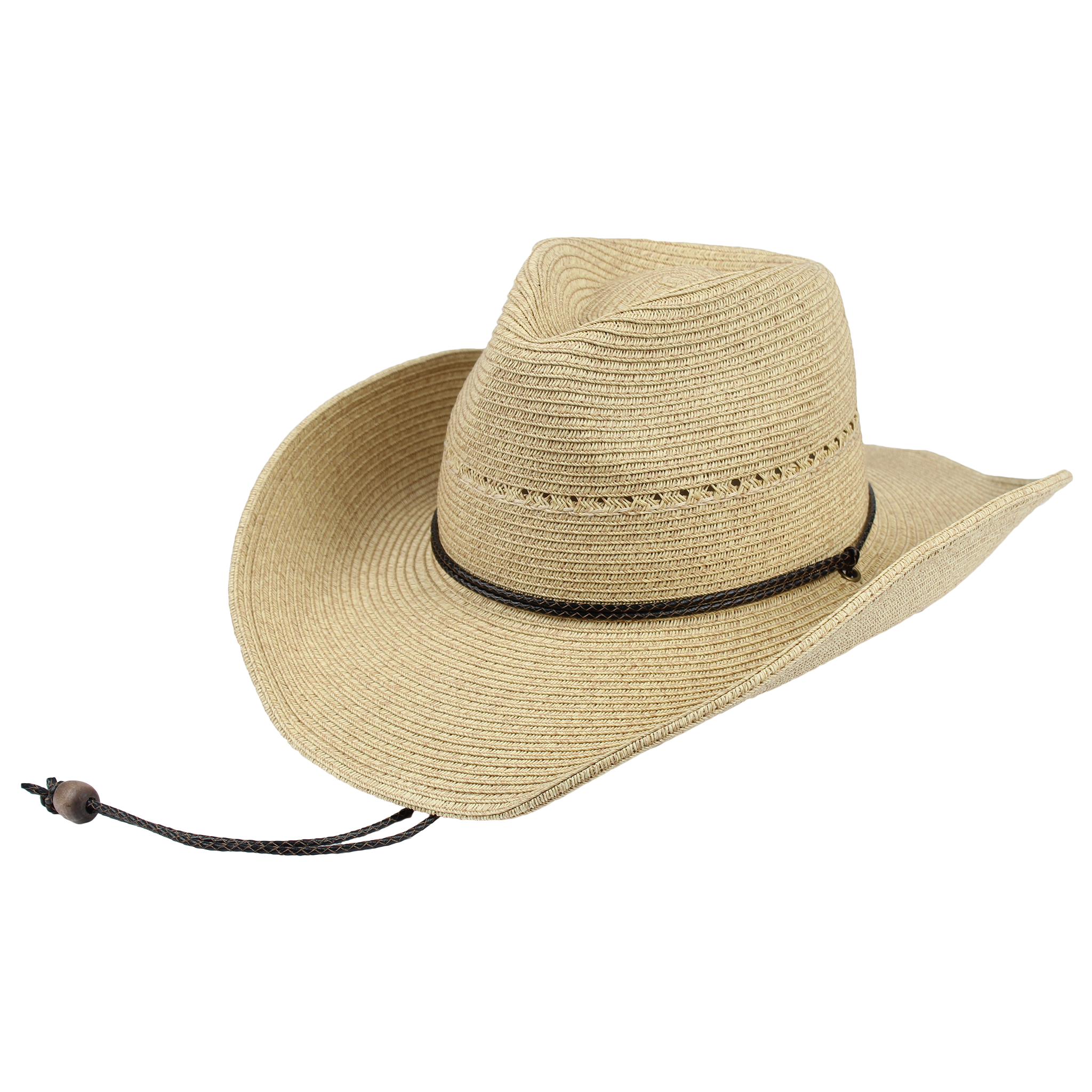 Women’s Cowboy Hat – contrast braid in crown, chin chord, elastic tie in the crown, 3.5" brim
