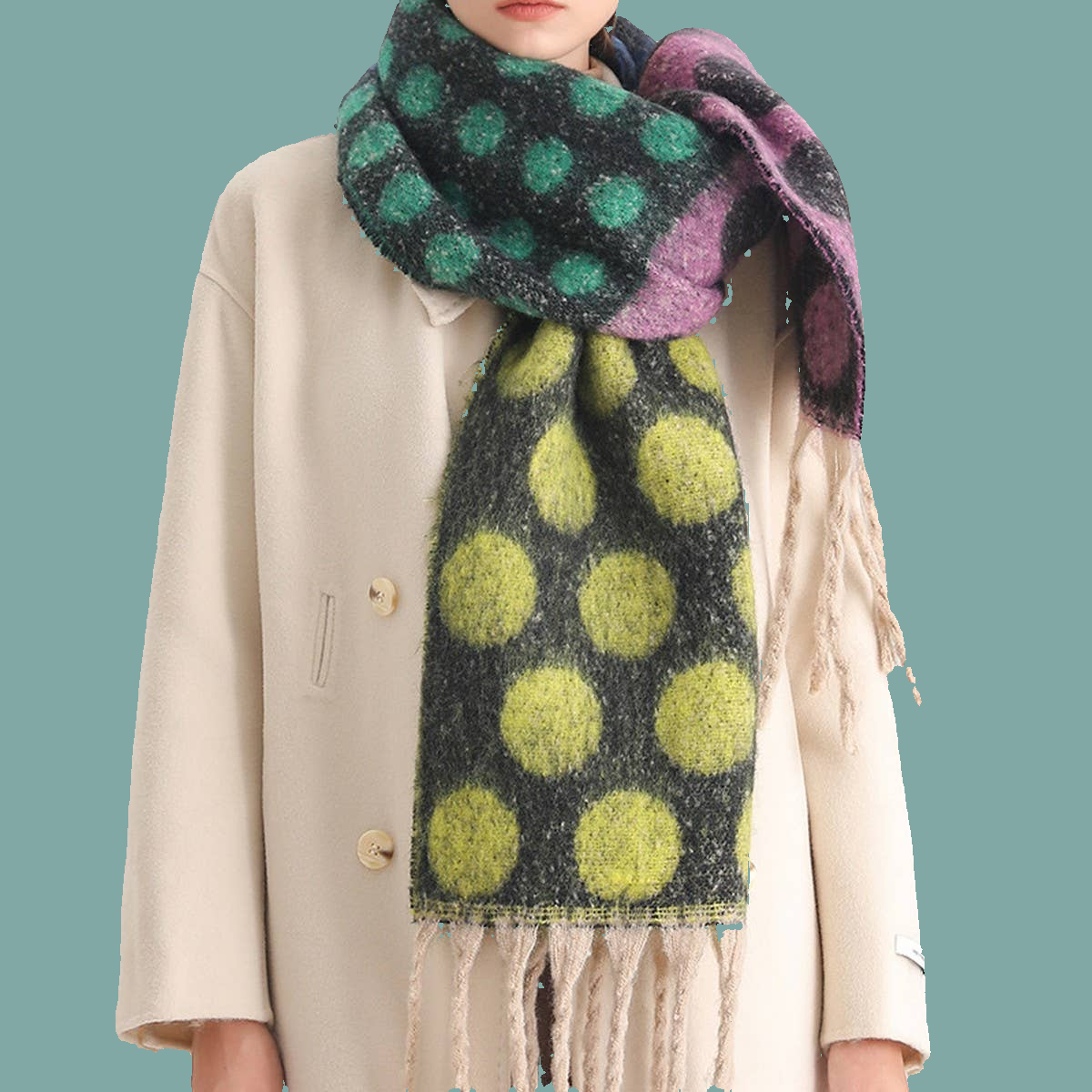 Wrap yourself in vintage charm with the Molly Polka Dot Knit Scarf. This cozy, thick-knit scarf features a playful retro polka dot pattern in vibrant multicolors that instantly elevates any winter outfit. The wool-like fabric provides serious warmth without the weight, making it perfect for layering over your favorite coat or wearing as a statement shawl. Whether you're heading to the office or out for weekend adventures, this timeless accessory brings a fun, nostalgic vibe to your cold-weather wardrobe.