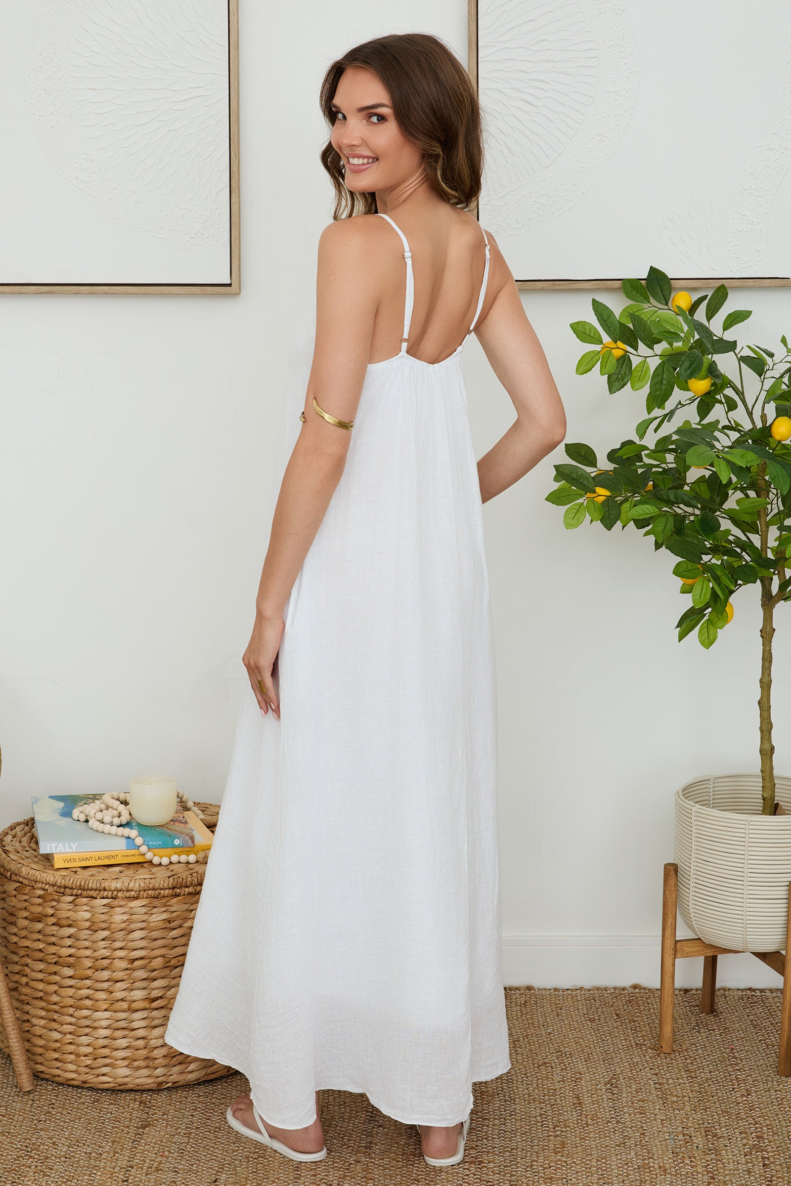 Effortless elegance meets everyday comfort in this flowing maxi dress. Delicate spaghetti straps provide a graceful silhouette while the adjustable design ensures the perfect fit for any body type. The generous maxi length offers versatile styling for casual outings or dressed-up occasions. Best of all, functional pockets keep your essentials close without compromising style. Lightweight and breathable, this dress transitions seamlessly from day to night.