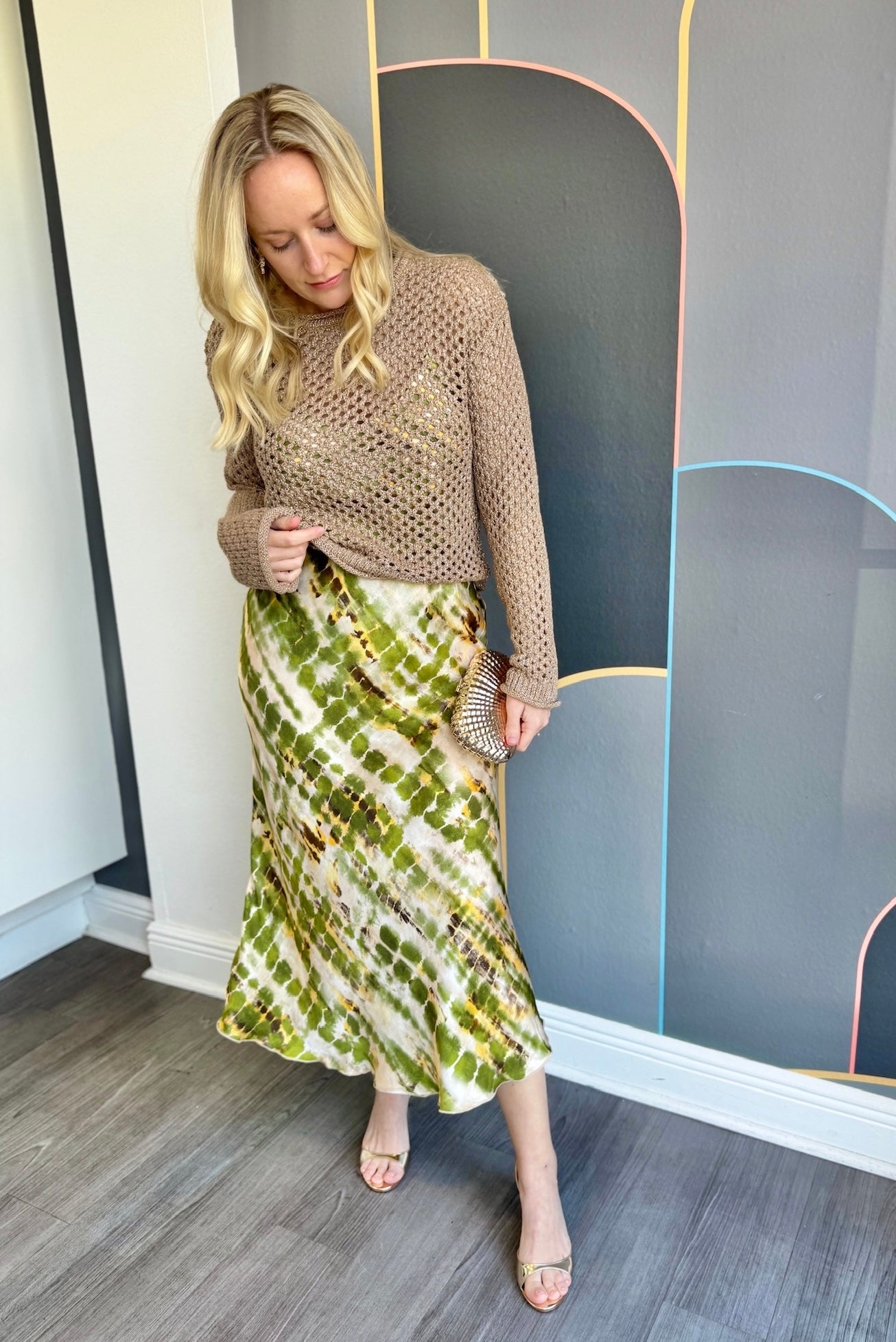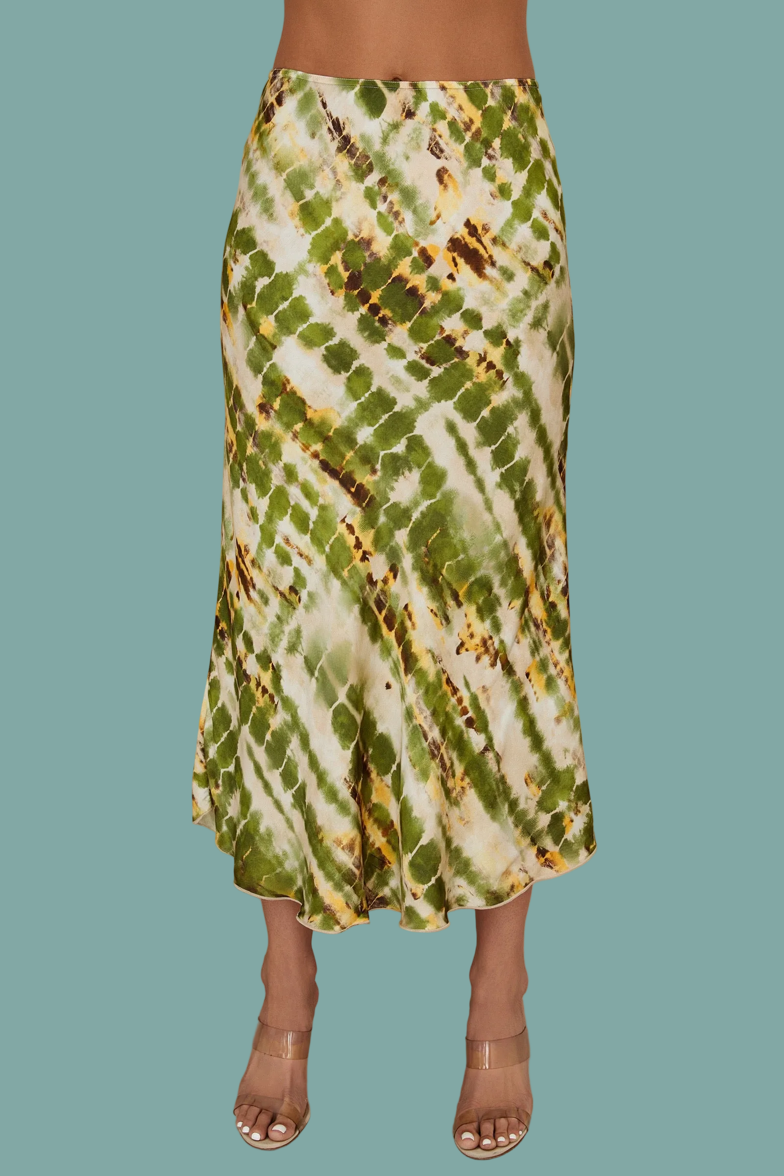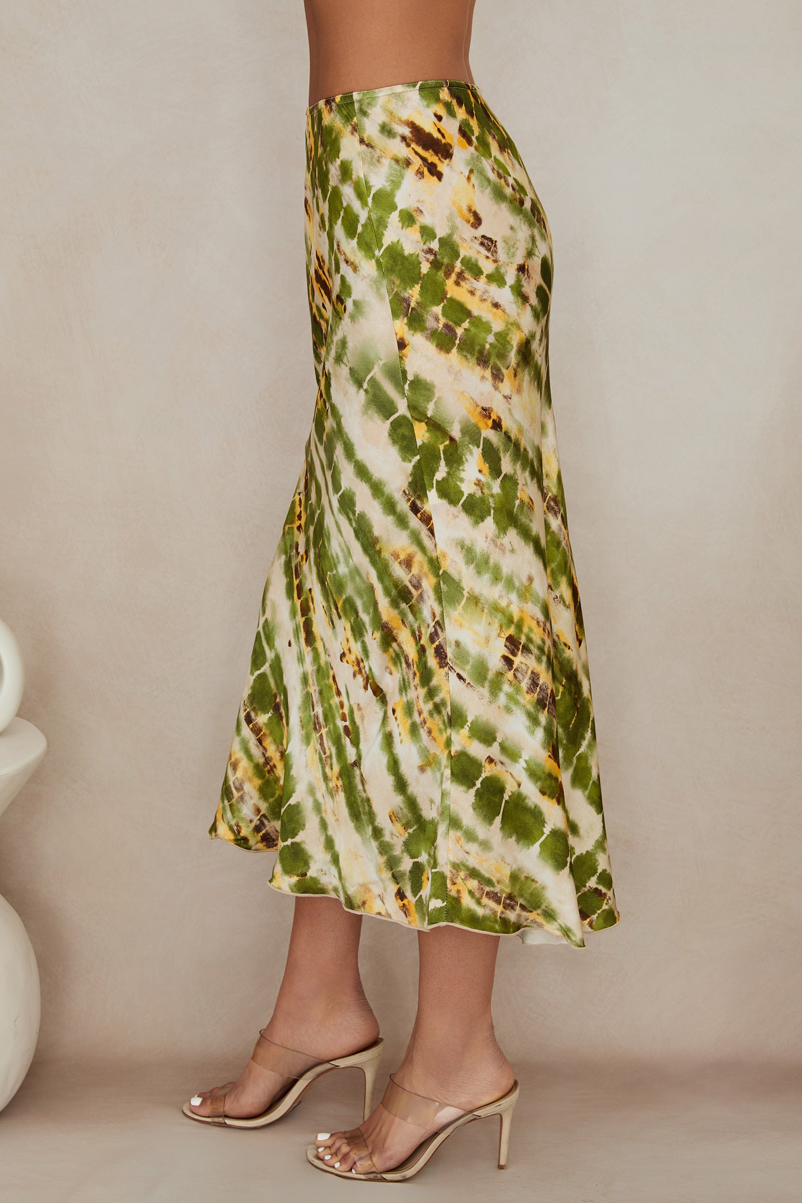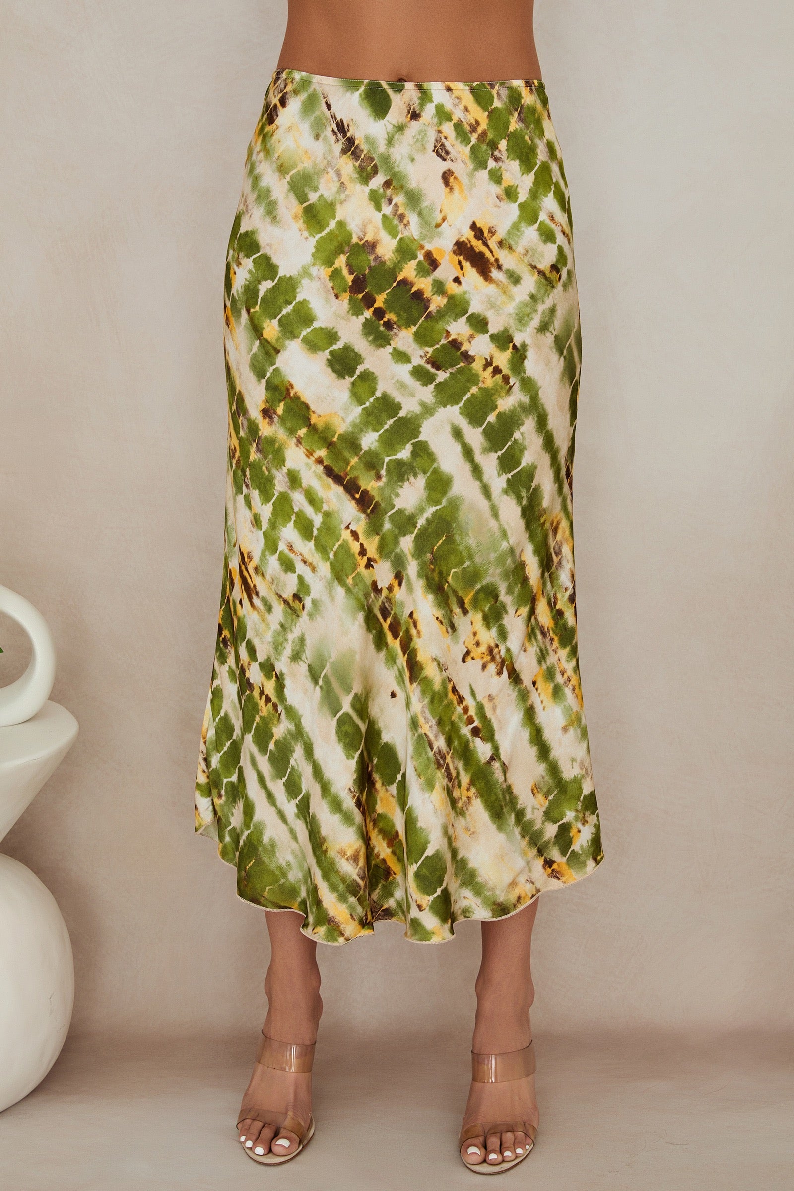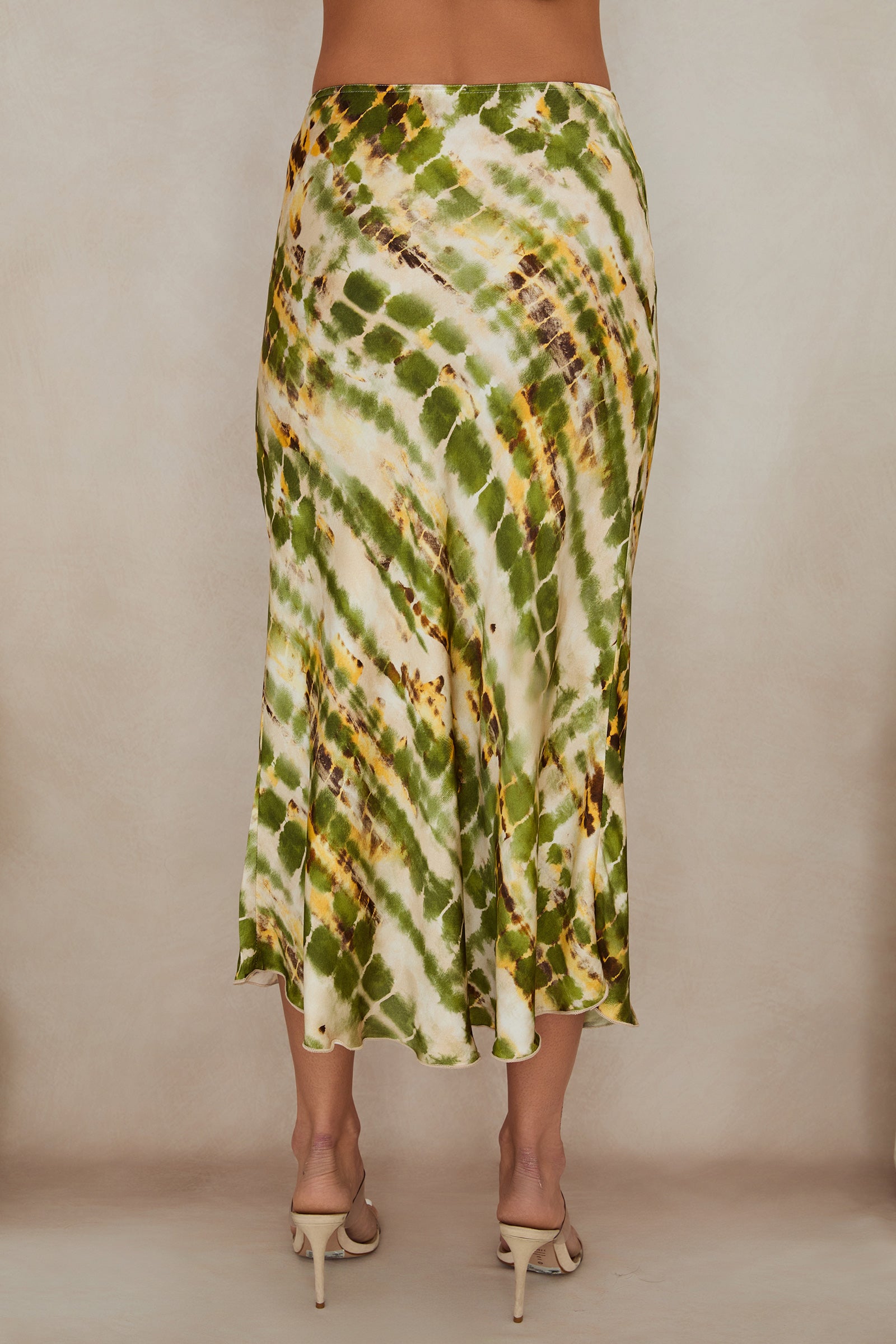 Silky Tie Dye Midi Skirt