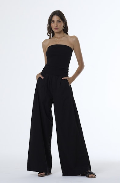 The June Jumpsuit combines effortless style with practical comfort. This one-piece features a soft 100% cotton mixed media knit tube top that hugs your silhouette, paired with relaxed wide-leg pants for a flattering, modern fit. Functional front pockets keep your essentials within reach. Perfect for casual outings, weekend brunches, or laid-back days when you want to look put-together without trying too hard.