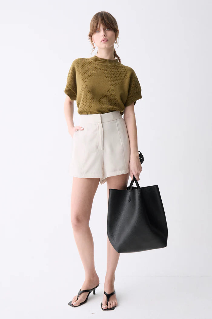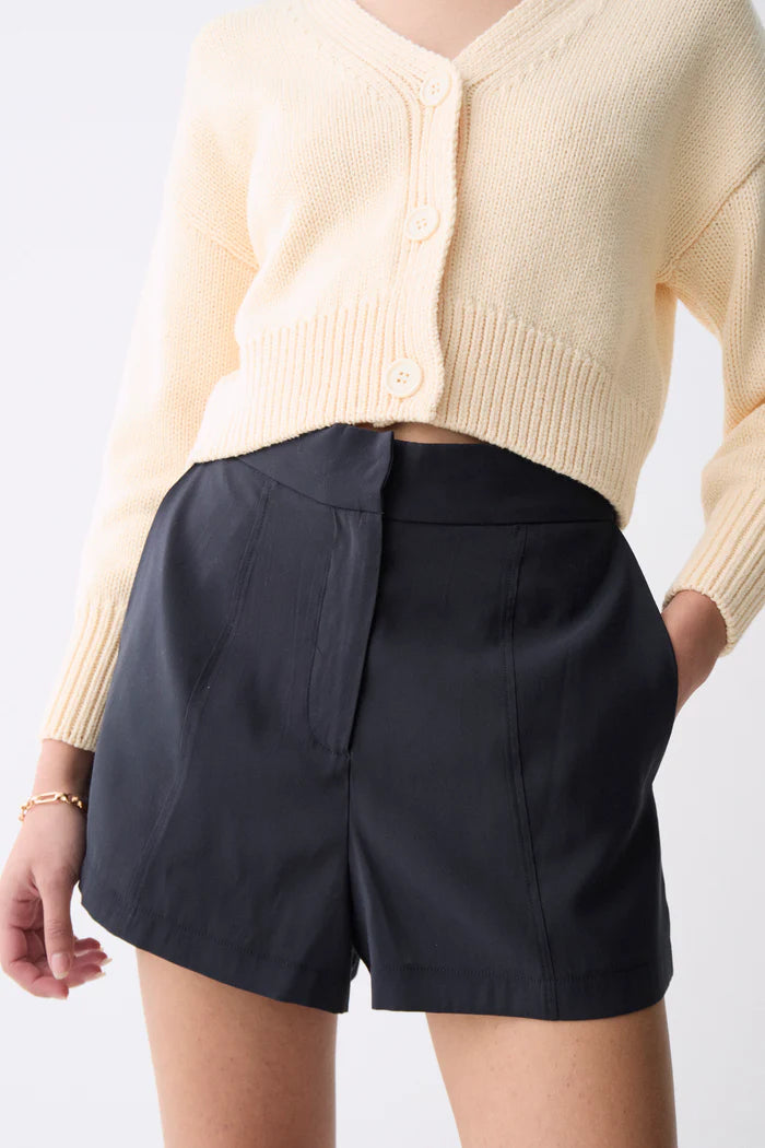 Catch some rays in style with the Caterina Shorts. These high-waisted shorts, made from soft rayon, not only flatter your figure with back darts and front hooks and zipper, but also keep your essentials close with convenient side pockets.
