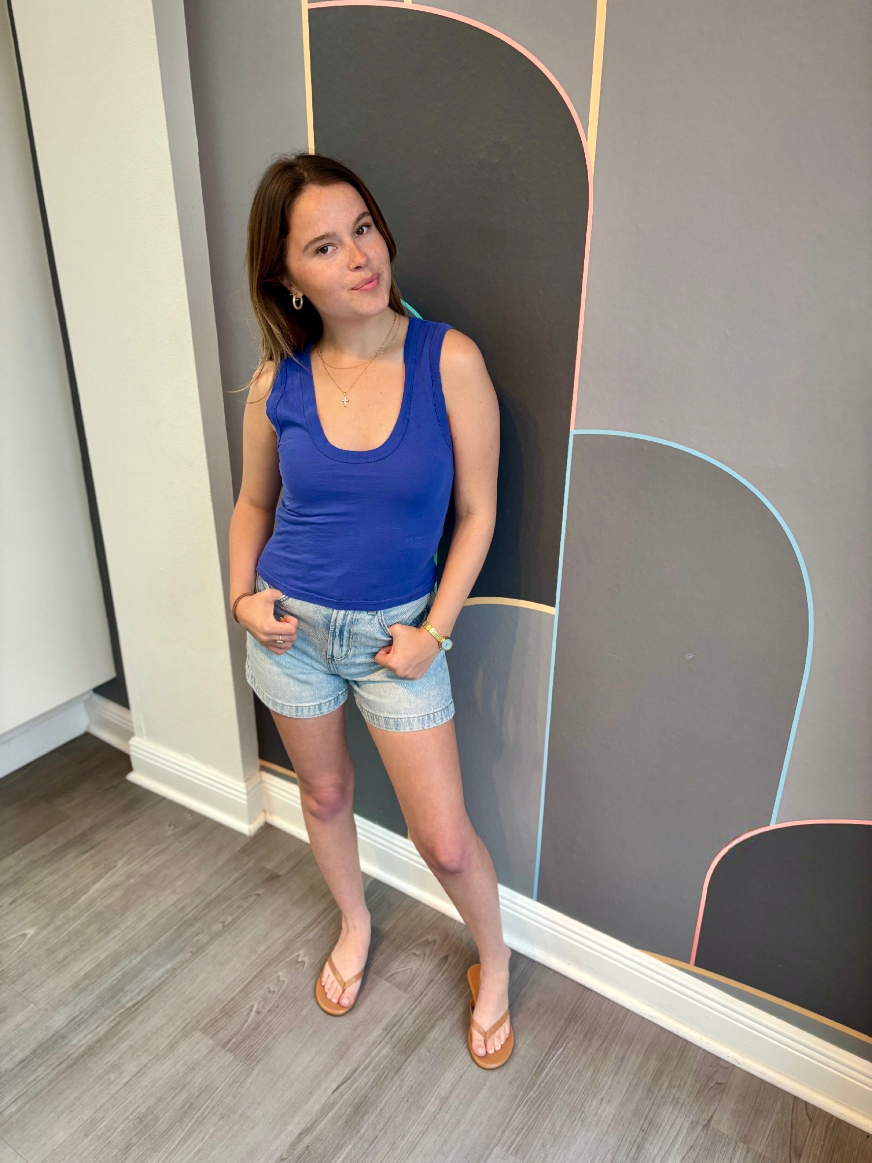 Pair Violet Blue Tank with the Emily Pull On Sweatshorts