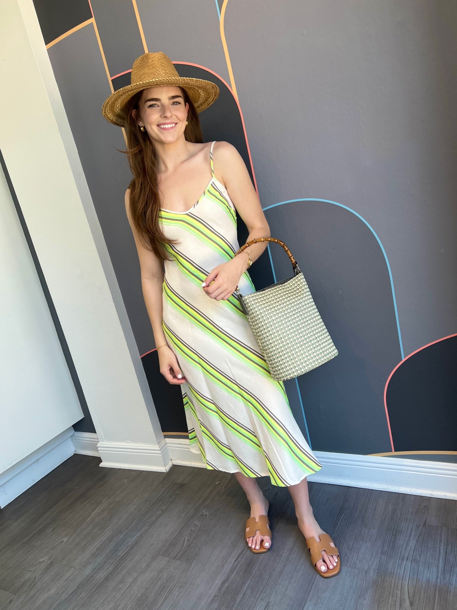 The Ana bias midi dress is a clean slip shape with a V-neck with adjustable spaghetti straps. Lovely fit with a side slit.