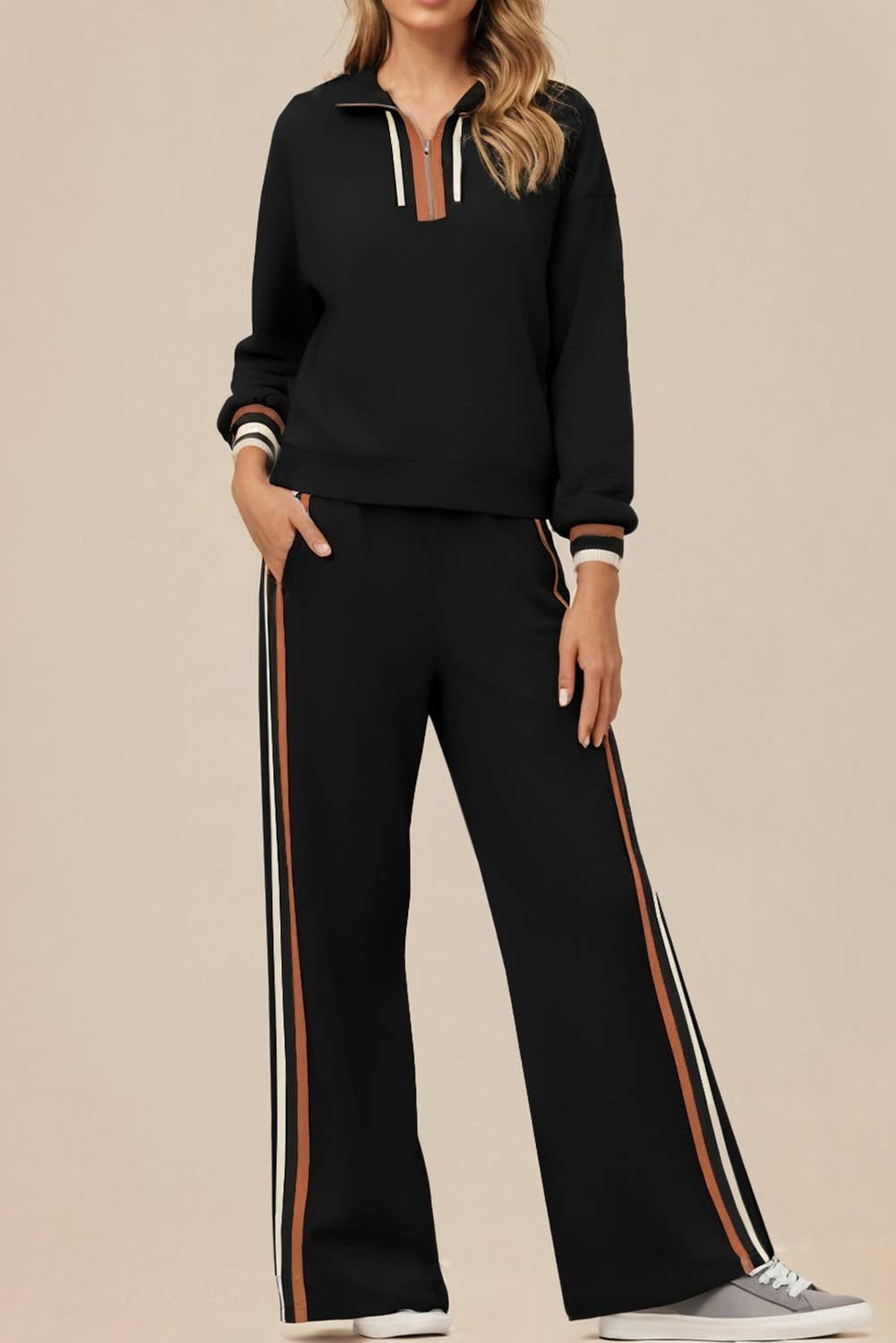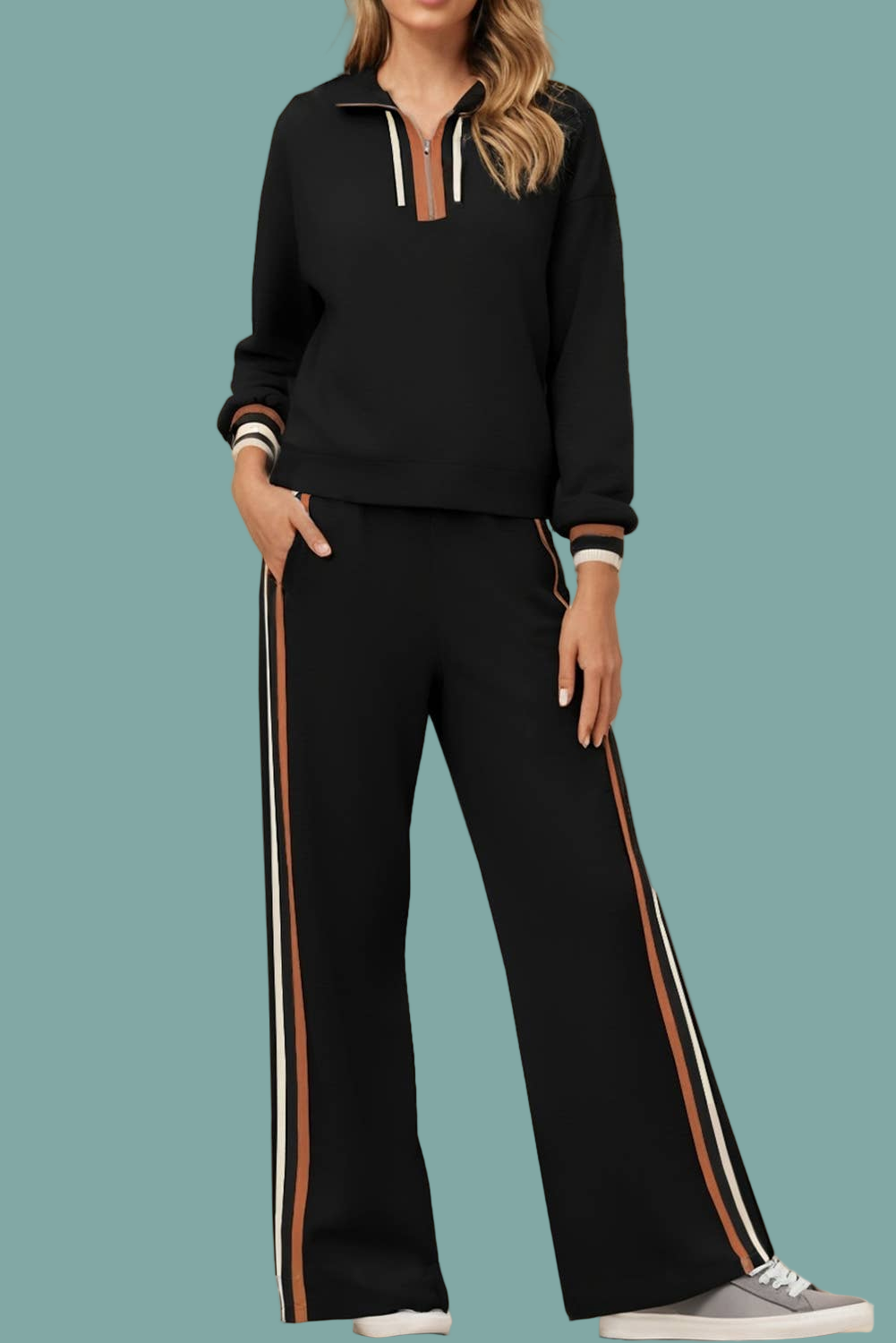 The Charlie Stripe Lounge Set brings effortless comfort to your downtime with a coordinated quarter zip sweatshirt and matching sweatpants. Both pieces feature eye-catching two-toned stripes that add visual interest while keeping things relaxed and laid-back. Perfect for lounging at home, running errands, or casual hangouts, this set delivers style without sacrificing comfort. Mix-and-match versatility means you can wear each piece separately or keep them together for a put-together look.
