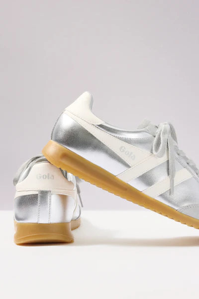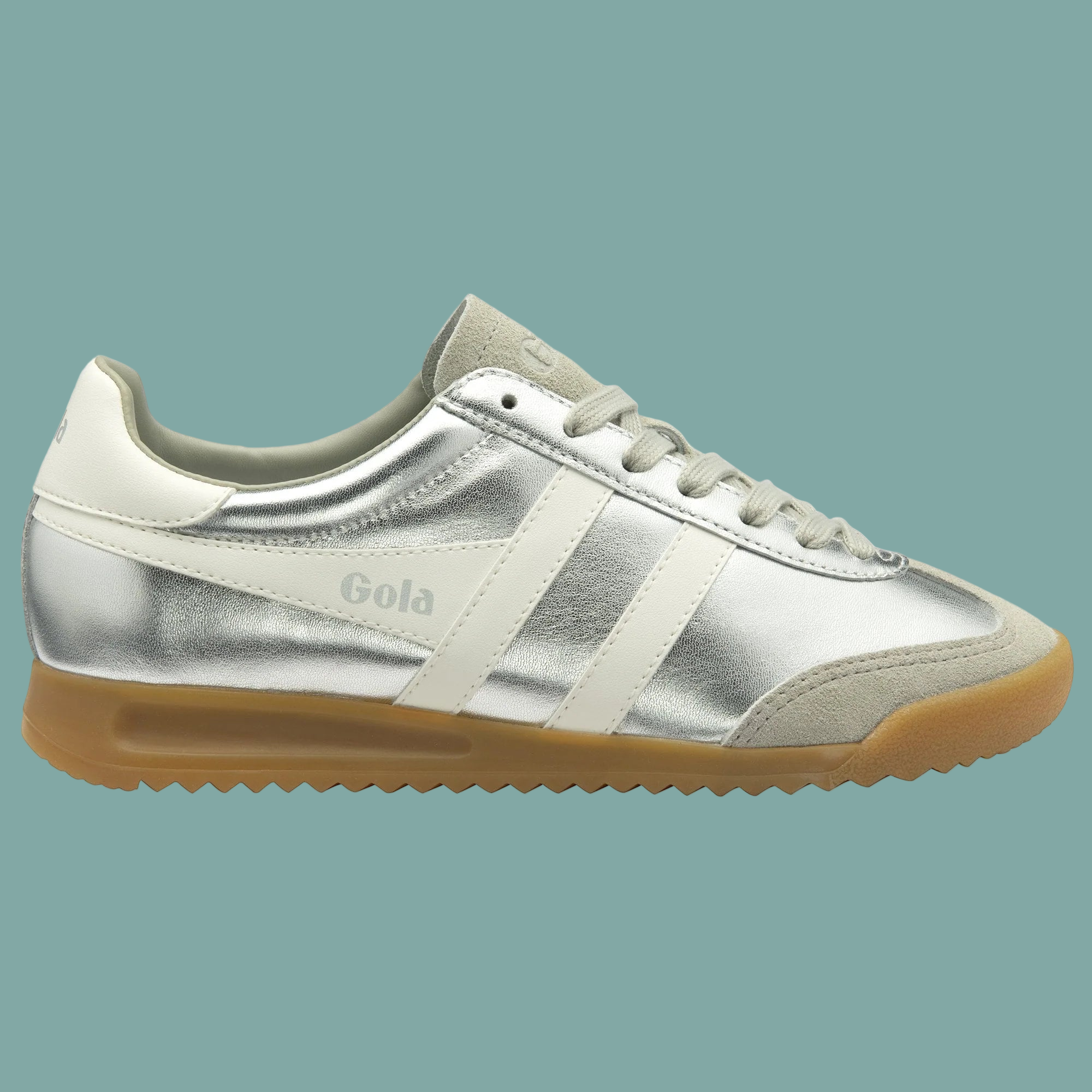 Step onto style with the Torpedo Glimmer Sneakers, inspired by Gola’s iconic 1985 design. These low-profile women’s trainers feature a sleek silver metallic upper paired with vibrant cerise accents on the wingflash branding and heel tab. The short toe and elongated lace facings add a fresh twist, making these sneakers perfect for casual, eye-catching looks. Comfortable and stylish, they bring a modern edge to a beloved classic.