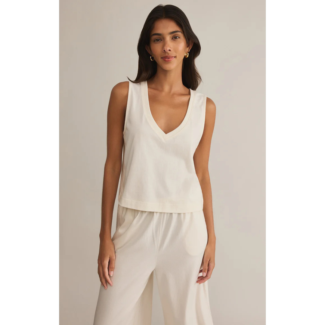 Our popular Sloane V-Neck Top now comes in this flattering v-neck version. Lightweight and made of cotton jersey fabric, this relaxed top is a versatile and effortless everyday piece, meant to be worn on its own.
