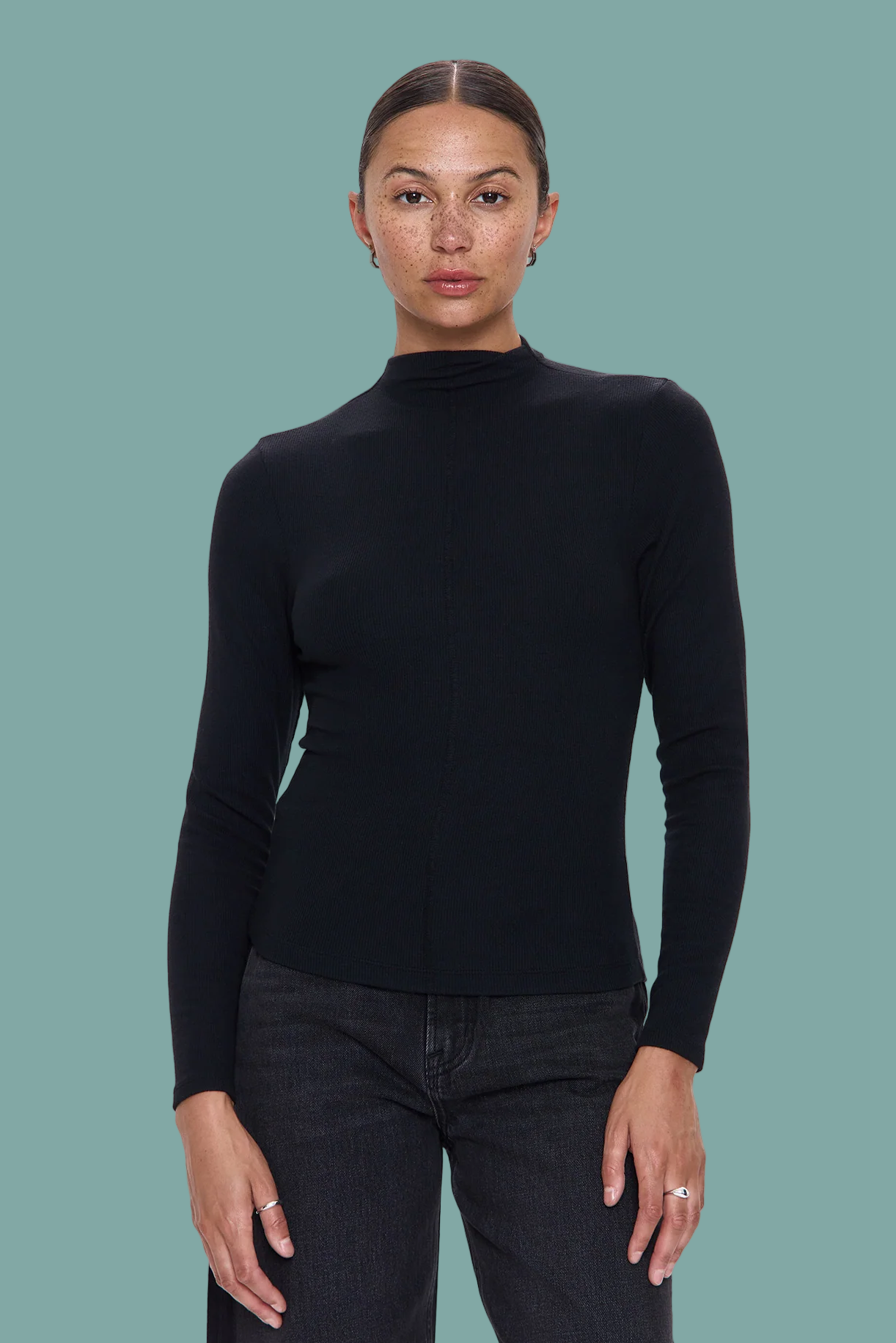 The sleek essential your wardrobe has been waiting for. Dara pairs a slim, body-skimming fit with a modern funnel neckline that feels equal parts chic and versatile. Designed in our soft, stretchy modal blend, it layers seamlessly under blazers or denim jackets but looks just as sharp worn solo. Finished with clean lines for an elongated effect. Crafted in Noir, a timeless black that adds instant polish to any look.