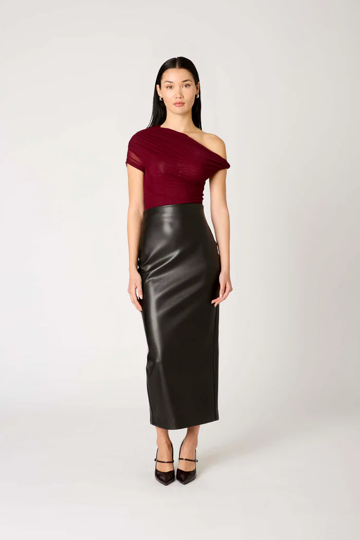 The Zephyra Top blends bold asymmetry with delicate texture in a fitted, cropped silhouette. A sheer mesh overlay drapes across the one-shoulder neckline, wrapping the front and back in soft, gathered detail. Designed with flexibility in mind, the mesh can be styled multiple ways—draped over both shoulders, twisted, or pulled asymmetrically—giving you endless options for a personalized look. A true statement piece that shifts with your mood.