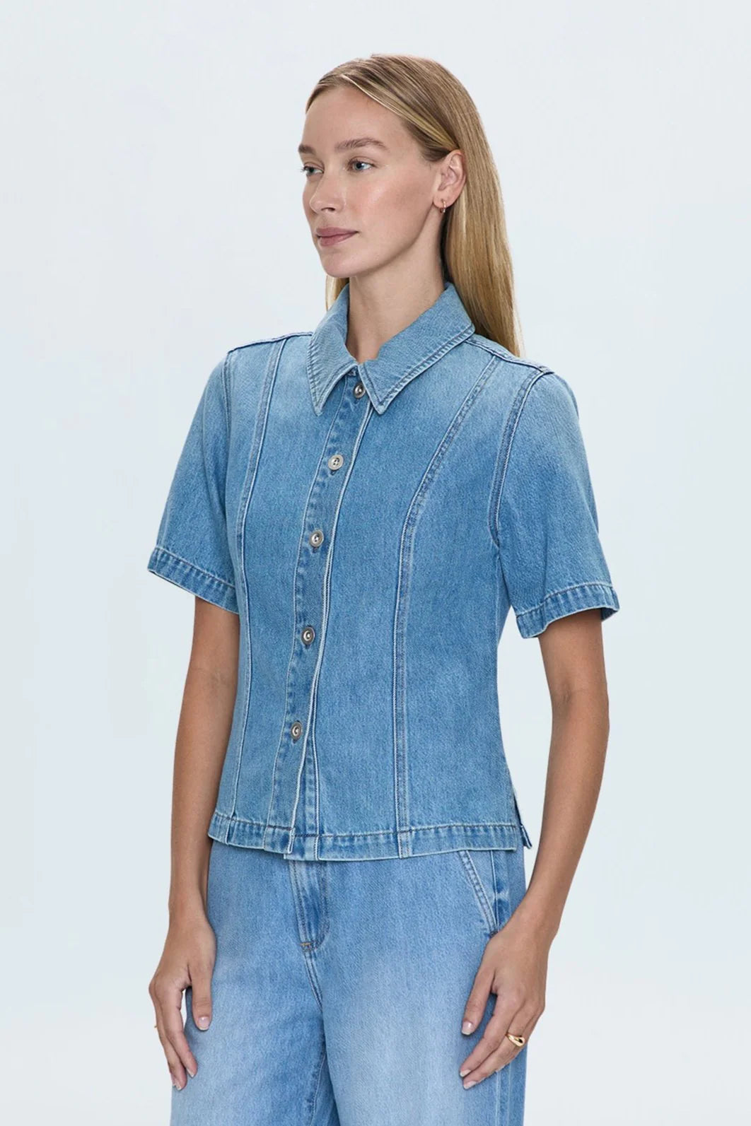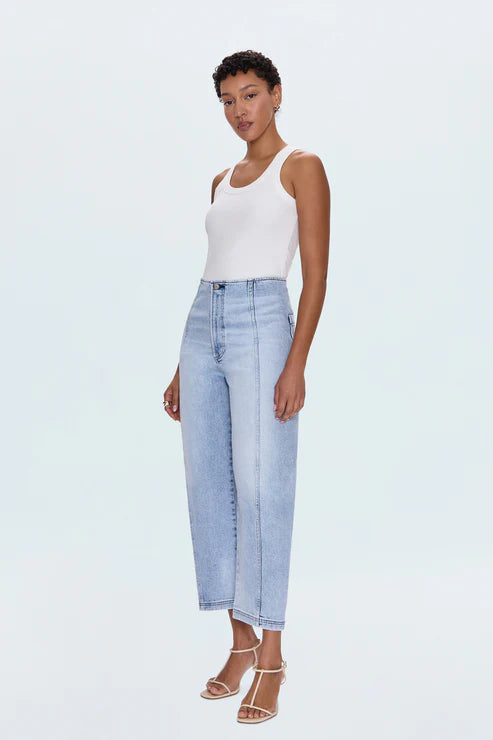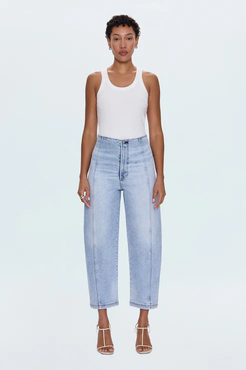 Lexi Mid Rise Bowed Straight Jean - Silver Screen