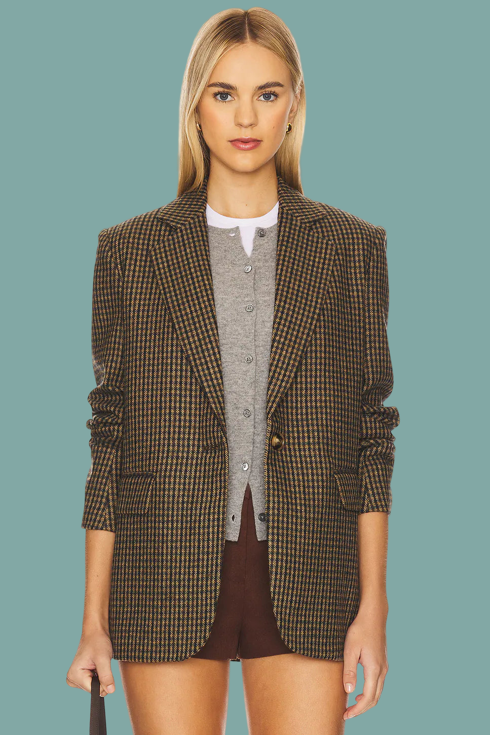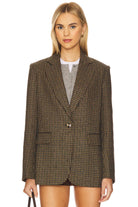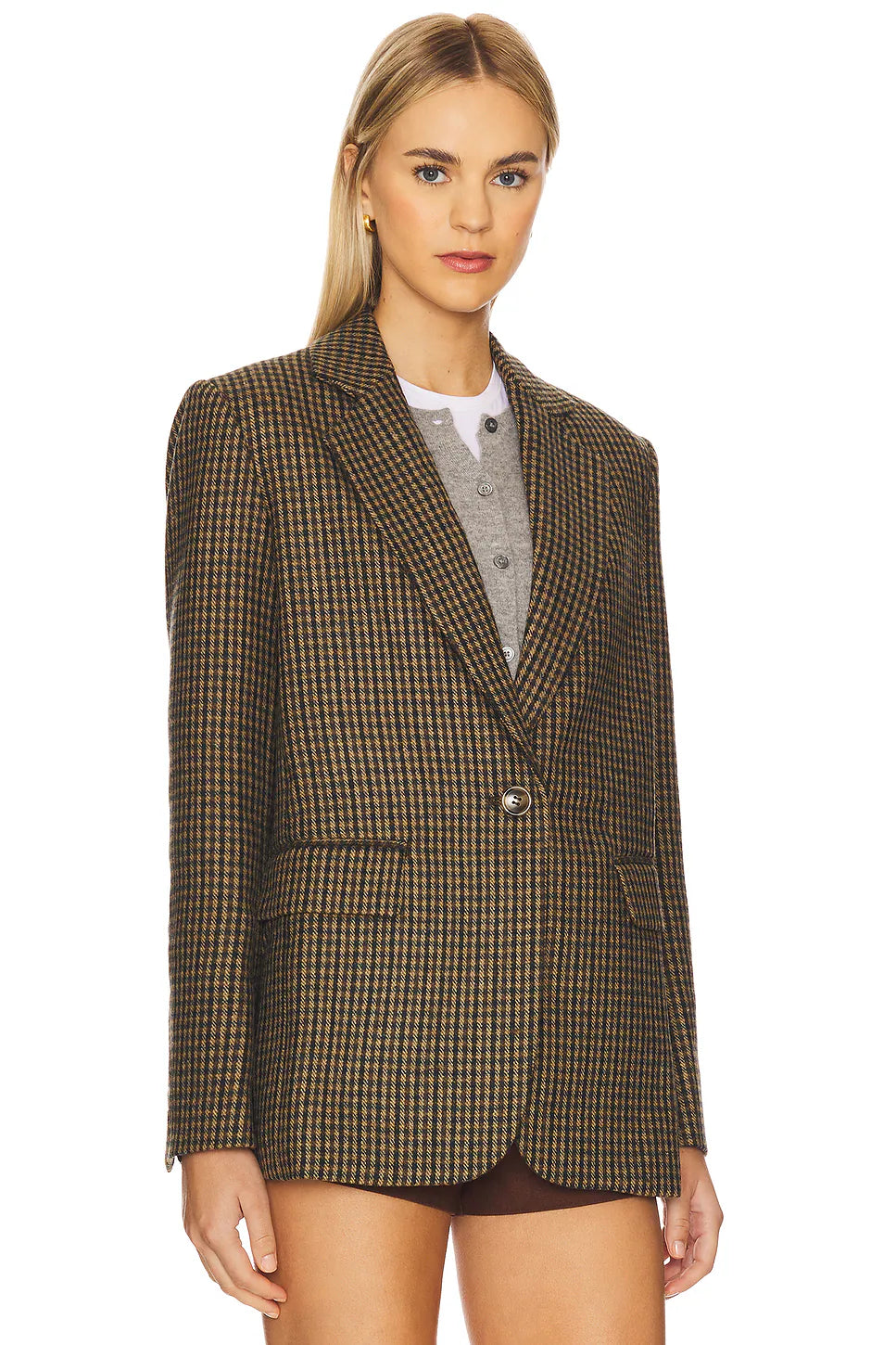 The Alex Blazer brings effortless polish to your everyday wardrobe. Crafted from midweight melton fabric with a luxe wool-polyester blend, this single-breasted style features padded shoulders for a flattering silhouette, functional front pockets, and buttoned cuffs for refined detail. The structured construction holds its shape beautifully, making it perfect for layering over everything from tees to dresses. Dry clean only. Made in China.