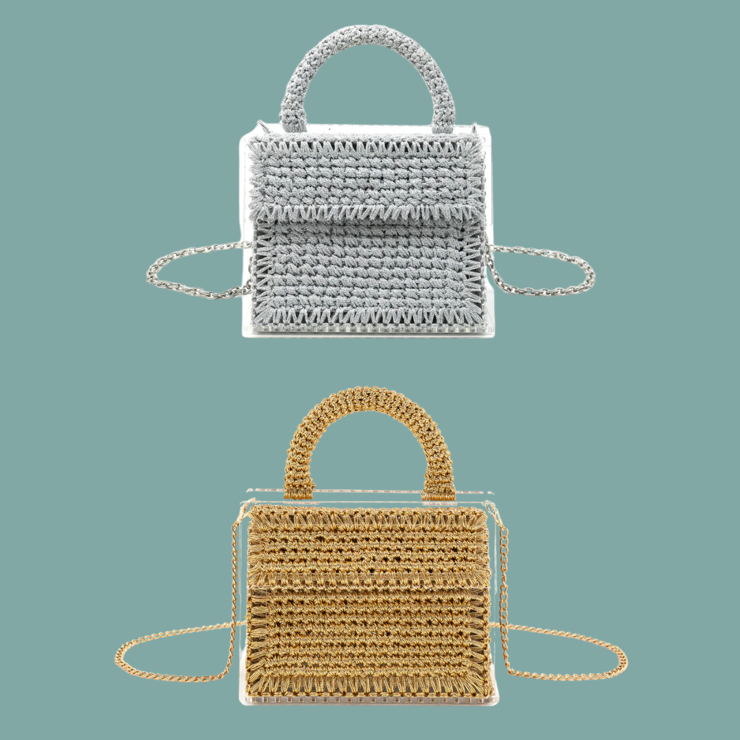 Carry your belongings in style with this Allison Acrylic Woven Bag! Measuring 8 x 6.5 x 4 inches, this bag is both sleek and functional. Perfect for adding a touch of modern elegance to any outfit. Say goodbye to boring bags and hello to our acrylic beauty!