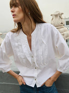 The Amelia Ruffle Shirt brings effortless texture and an element of interest to the everyday. Made of 100% cotton in a boxy, cropped fit.