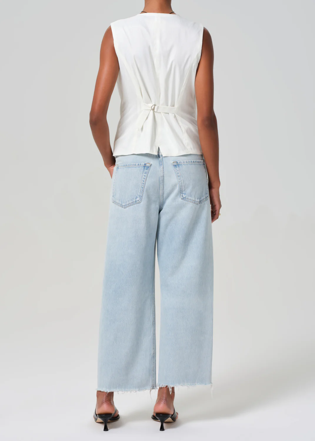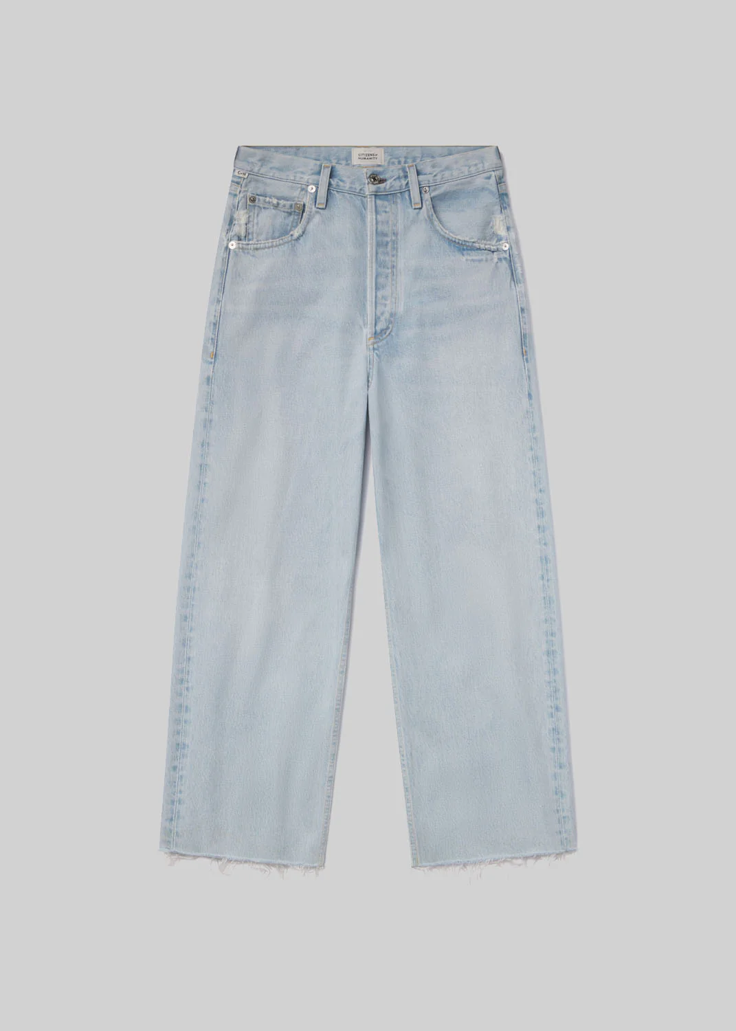 Get nautical with the Citizens of Humanity Ayla Raw Hem Crop jeans - inspired by vintage styles and designed for a relaxed fit that flatters your natural waist. Made with non-stretch regenerative cotton, these light indigo jeans offer a soft hand feel and can be worn cuffed or uncuffed. True to size, or for a higher fit, size down. Ahoy there!
