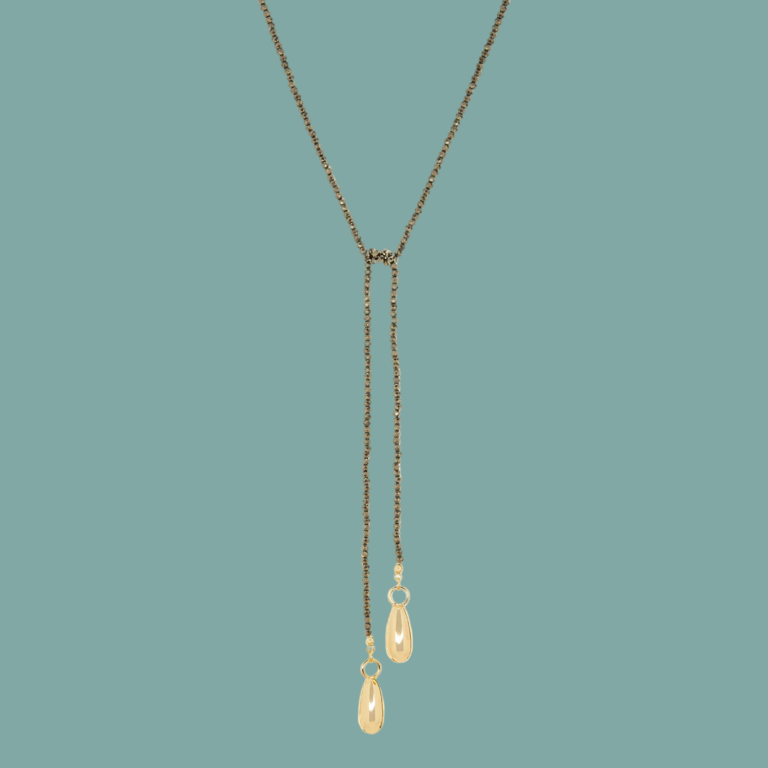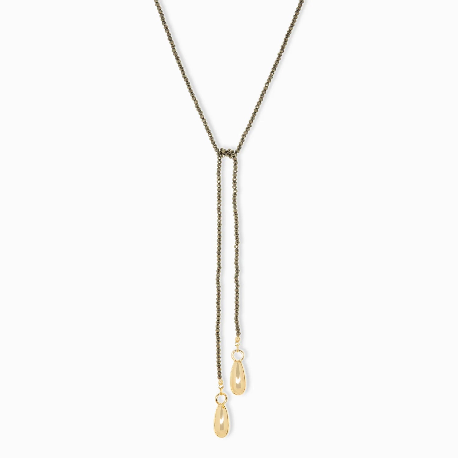 Get the ultimate natural stone statement look with our Beaded Lariat with Bean Charms!