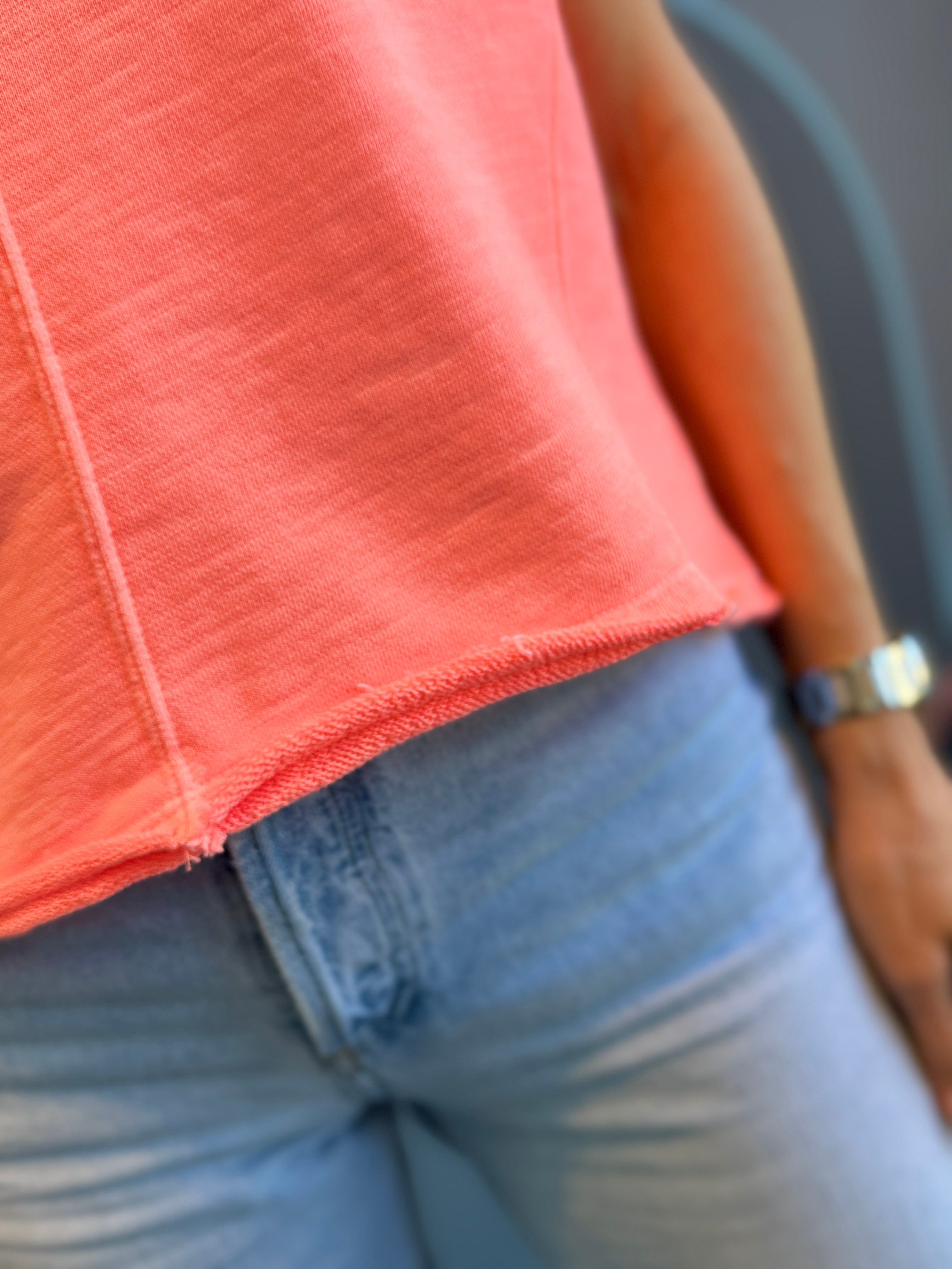 Asymmetrical short sleeve raw hem tee