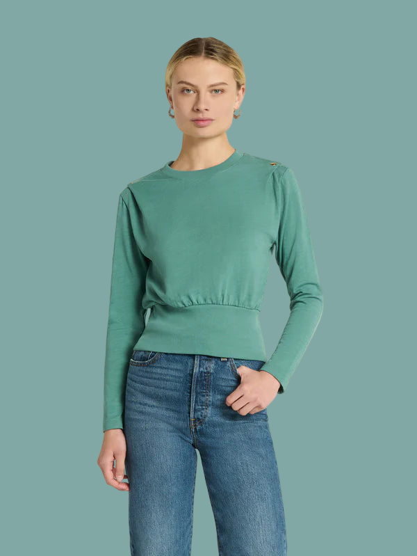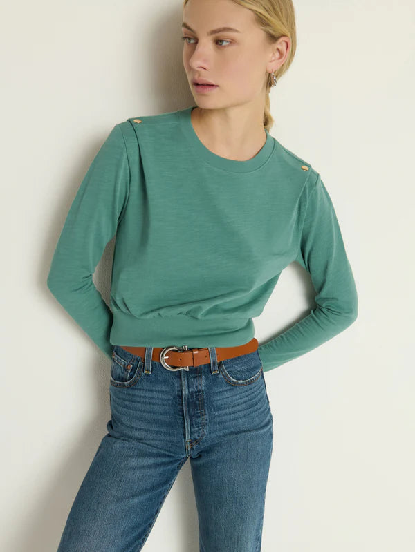 The Brixton Top is a versatile essential featuring a classic crew neckline and a slim, flattering fit. Designed for everyday wear, it pairs effortlessly with any outfit. Button snaps on the shoulder add a subtle, stylish detail. Available in a calming Sagebrush shade, it’s perfect for a laid-back, comfortable look.