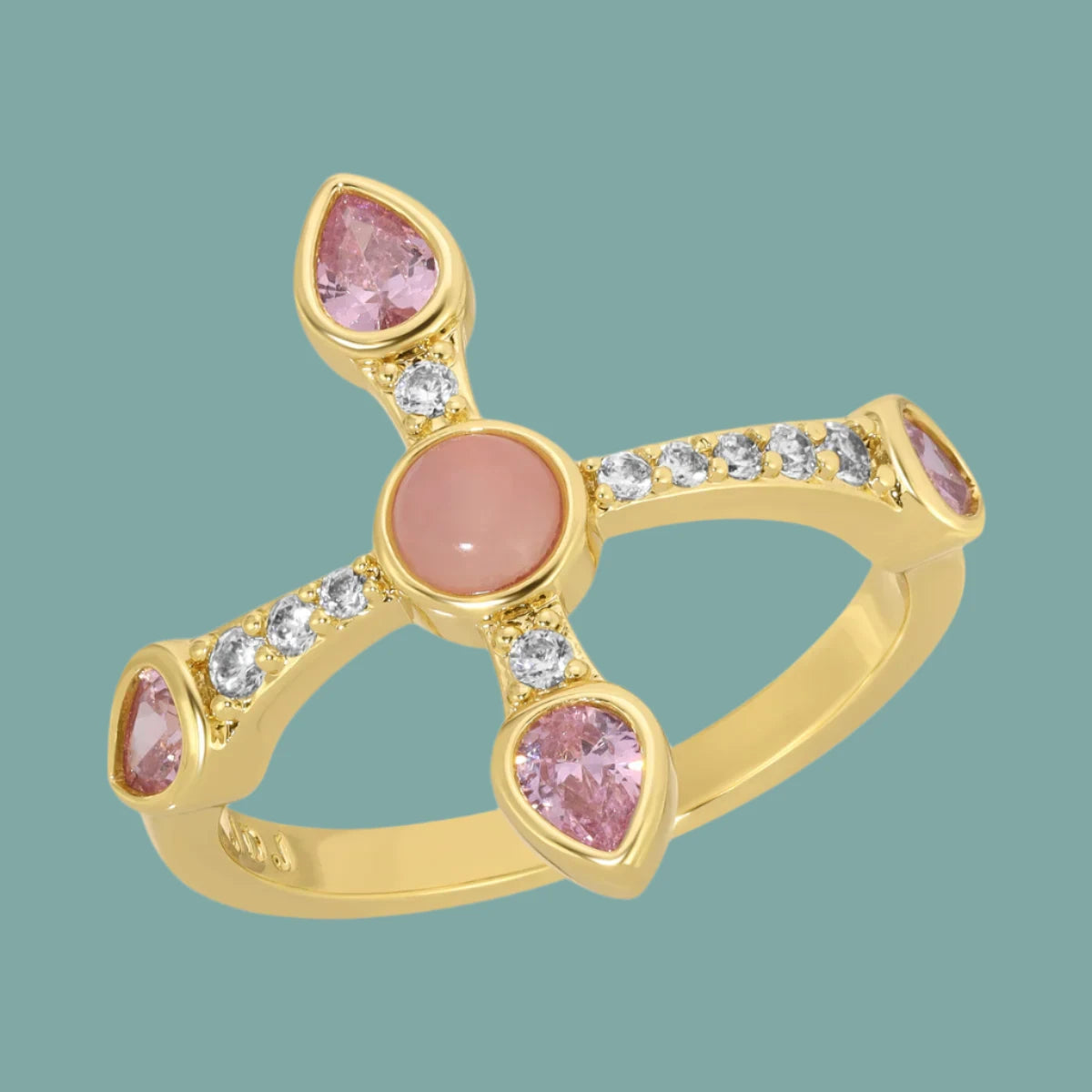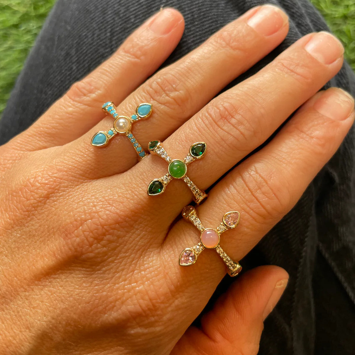 Add a pop of color to your favorite ring stacks with the Camille Cross Ring! Perfect to wear all by itself, or to add more bling to your ring stacks!