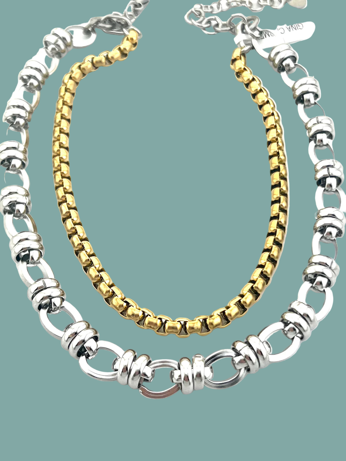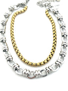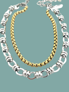 16-18 inch adjustable gold plated ion and silver link layered necklace