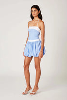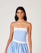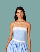 Chic with a touch of structure, the Cherry Top is the perfect blend of sophistication and playfulness. Featuring a strapless silhouette with delicate halter ties, this corset-inspired piece hugs in all the right places. A crisp contrast trim adds a fresh, tailored feel, while subtle pinstripes keep it timeless. Pair it with your favorite high-waisted bottoms for an elevated yet easygoing look.