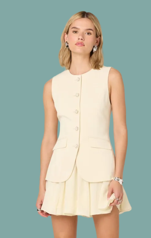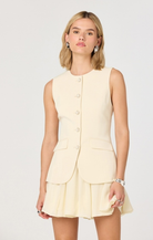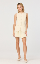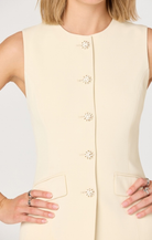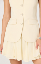 The Christen Dress brings effortless style with its pale yellow hue and eye-catching mixed media design. Featuring a button-front closure with striking metal and leather buttons, this mini dress combines texture and edge for a look that works from day to night. The blend of materials adds visual interest while keeping the overall vibe relaxed and wearable. Perfect for anyone who loves a little personality in their wardrobe.