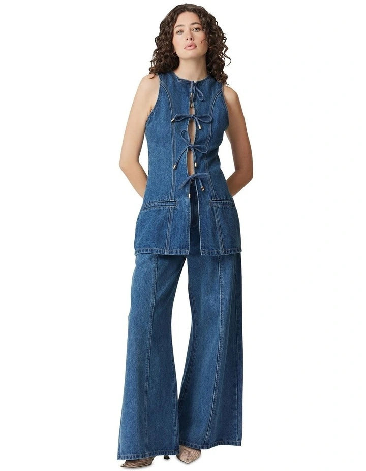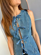 Elevate your casual style with the Clara Sleeveless Top from Curaae by Elliatt. Made from soft and durable denim, this top features a flattering fit and an adjustable tie-up front for a customizable look. Perfect for layering, this top adds effortless cool to any outfit.