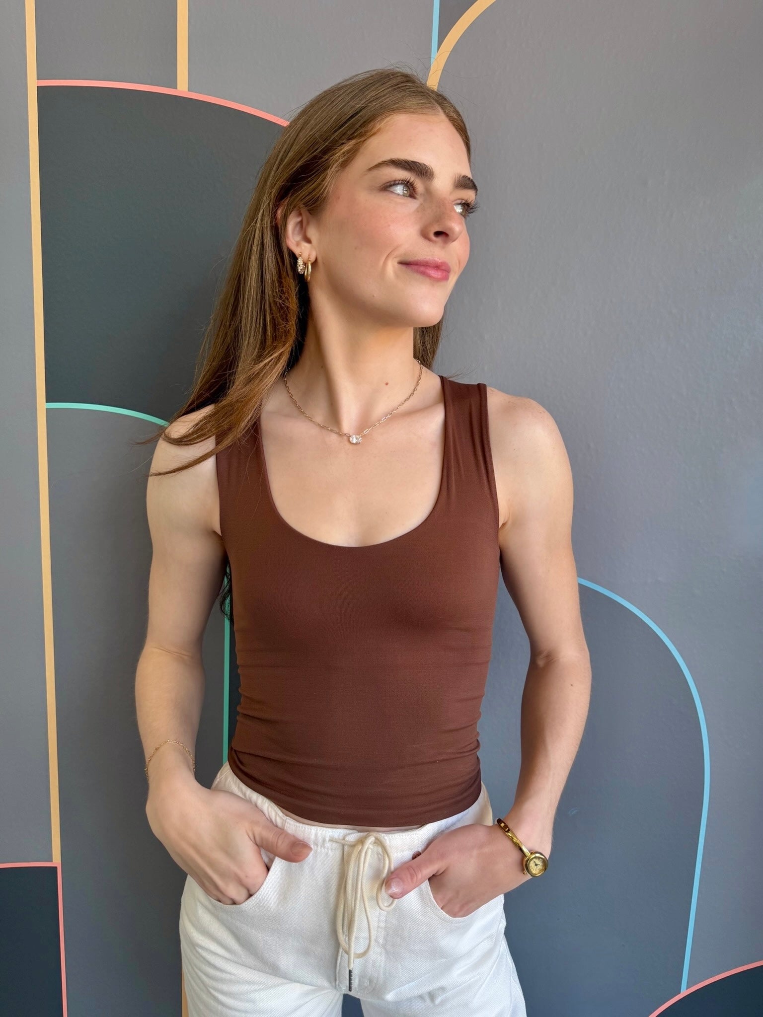 A new addition to your favorite seamless collection. This sleek tank is featured in a buttery soft fabrication with a scoop-neckline and sleeveless silhouette.