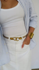 Elevate your everyday look with the Cruiser Belt, crafted from sustainable vegan leather with a sleek gold-plated brass buckle. This versatile accessory adjusts from 24¼" to 41½", fitting most body types comfortably. At just ¼" wide, it pairs effortlessly with jeans, dresses, or casual outfits. Durable, stylish, and cruelty-free—the perfect finishing touch for any wardrobe.