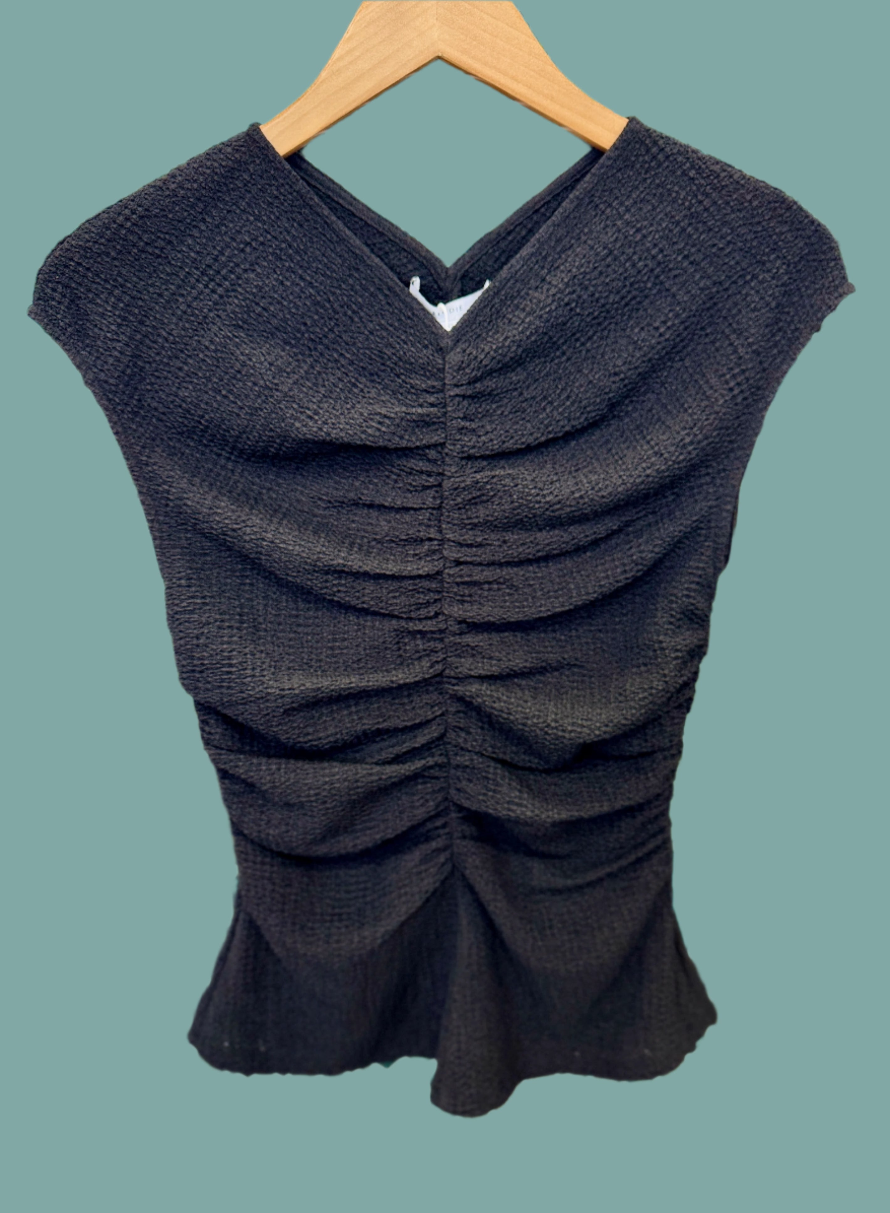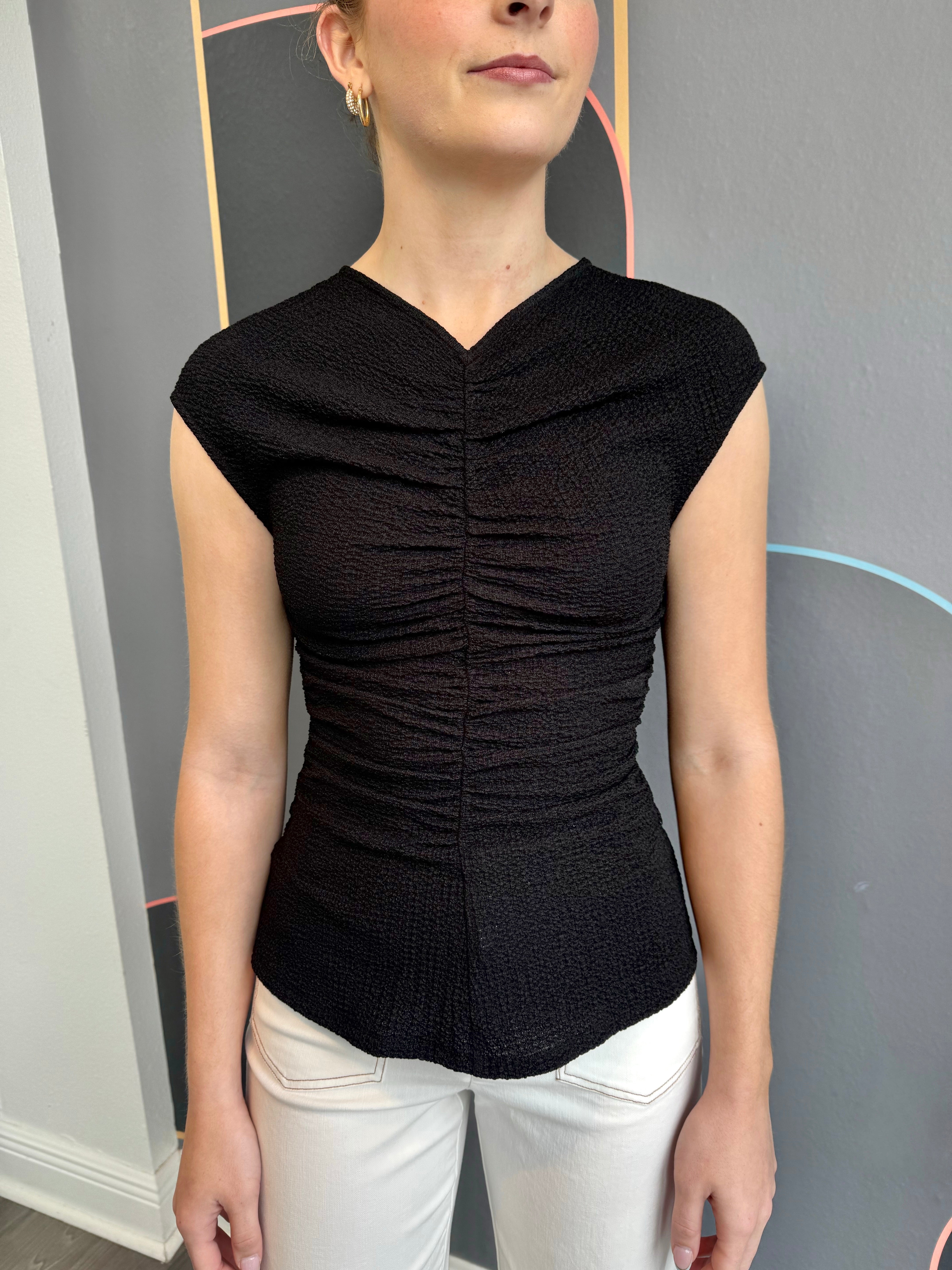 Black crinkled texture center ruched top