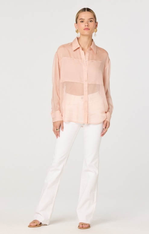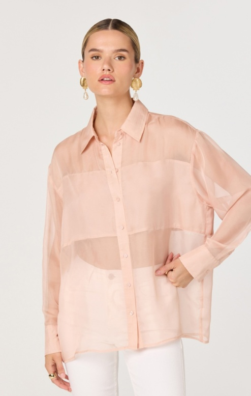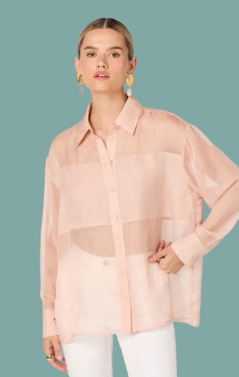 The Evie Shirt brings effortless style with its button-up collard design and breathable mesh fabric. Featuring a flattering double-lined band at the bust for added coverage, this piece works beautifully layered or worn solo. The soft blush tone complements any wardrobe, making it perfect for casual outings or dressed-up occasions. A versatile staple that feels as good as it looks.