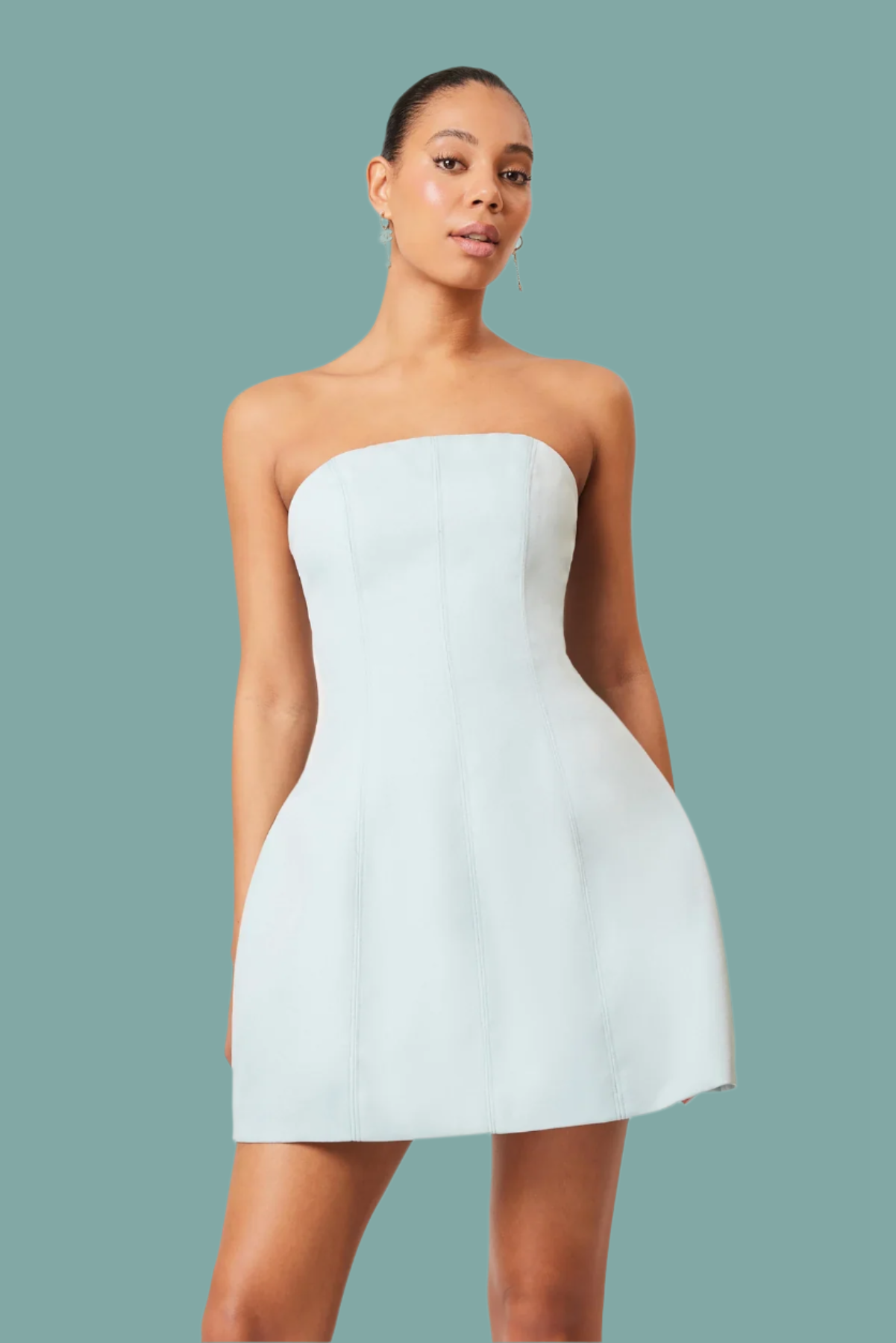 This chic and sophisticated strapless mini dress is perfect for any special occasion. Crafted from luxurious bonded crepe, it offers a sleek and flattering fit. And with a fully lined interior and invisible zipper, you'll be comfortable and stylish all night long. Bonus: detachable straps for even more versatility.